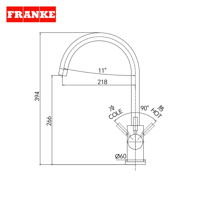 弗兰卡厨房水槽龙头高抛全铜一体水龙头陶瓷阀芯通用