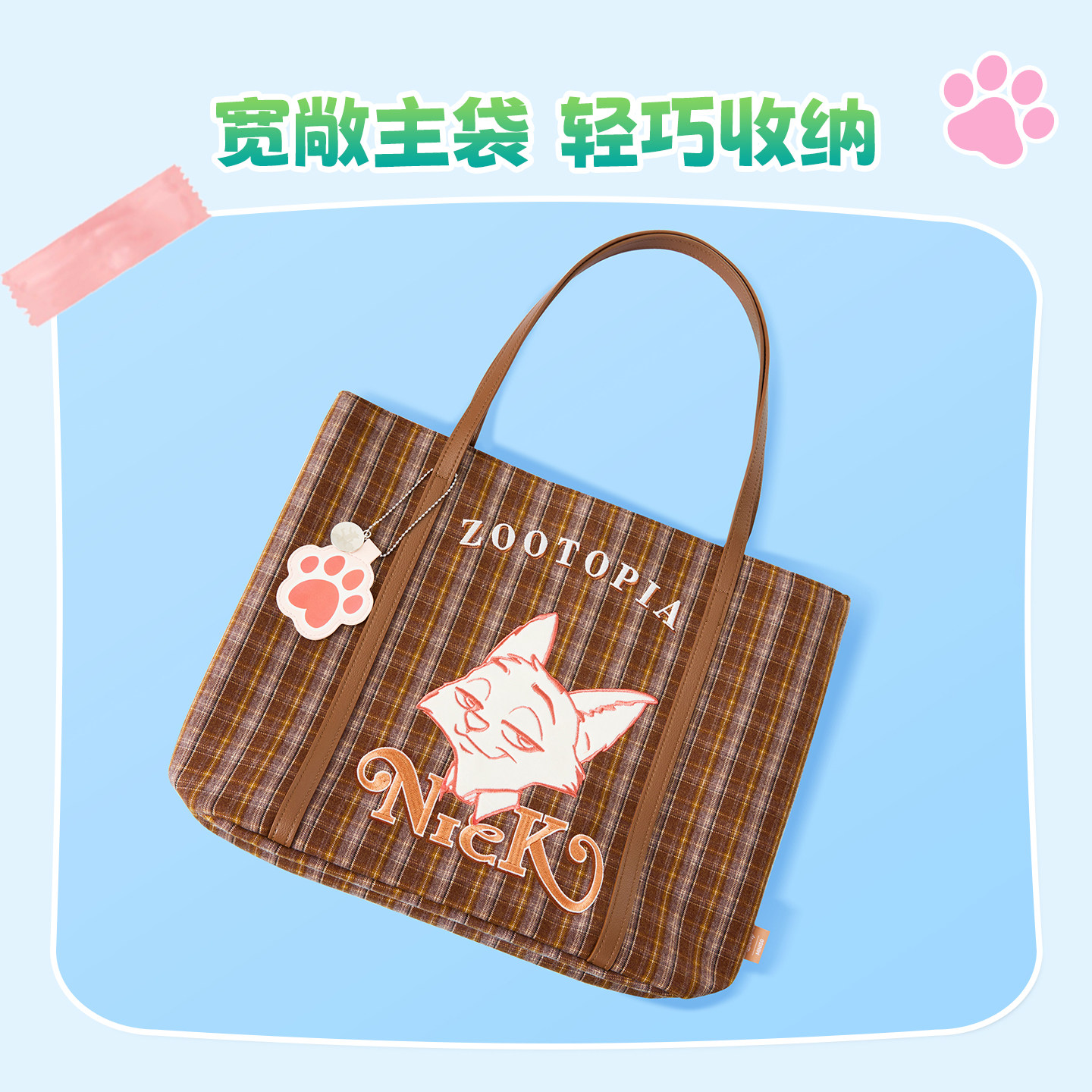 MINISO名创优品迪士尼疯狂动物城系列格纹托特包