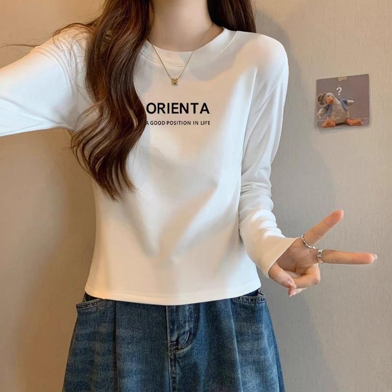 欧货白色长袖t恤女2025新款秋冬内搭纯棉德绒打底衫女士短款上衣