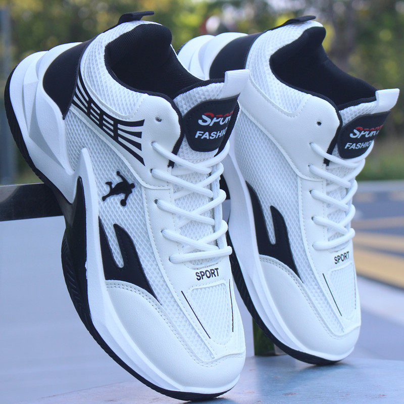 男鞋新款白色高帮篮球鞋学生透气运动鞋男士休闲耐磨防滑跑步球鞋