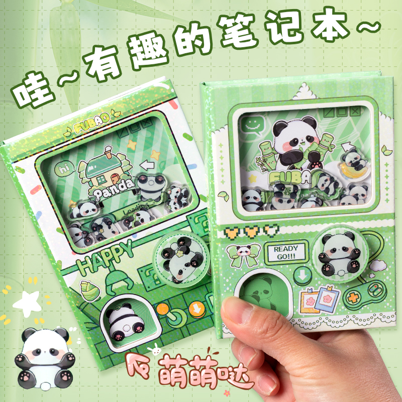 福宝熊猫扭蛋机关本卡皮巴拉可爱小学生趣味手账本解压摇摇乐安静书口袋本卡通笔记本本子创意减压随身记事本
