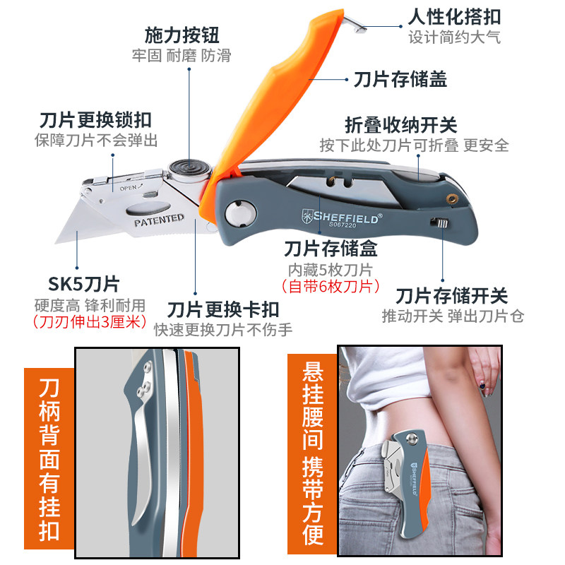 钢盾美工刀重型全钢加厚折叠裁壁纸刀片美工刀具电工刀专用工业级