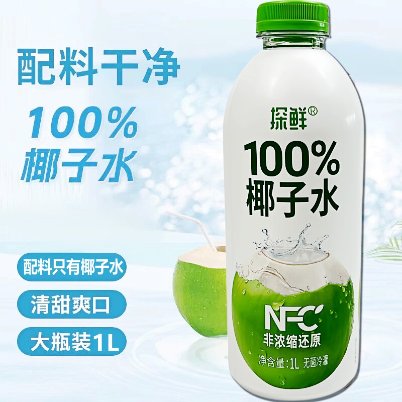 探鲜椰子水新鲜椰子椰青非浓缩还原0糖0脂天然电解质果汁商用1L