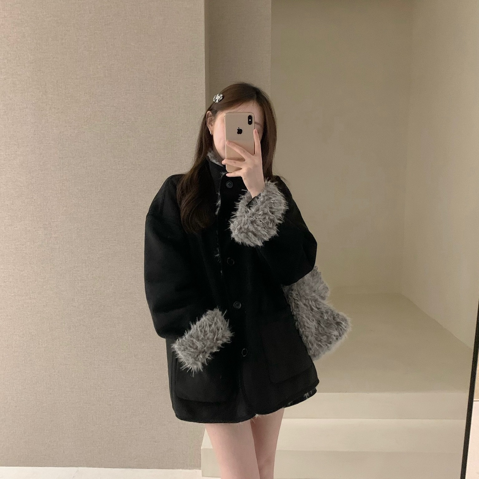 一善氛围感不挑人穿中长款立领保暖皮毛一体外套(配毛毛包包)