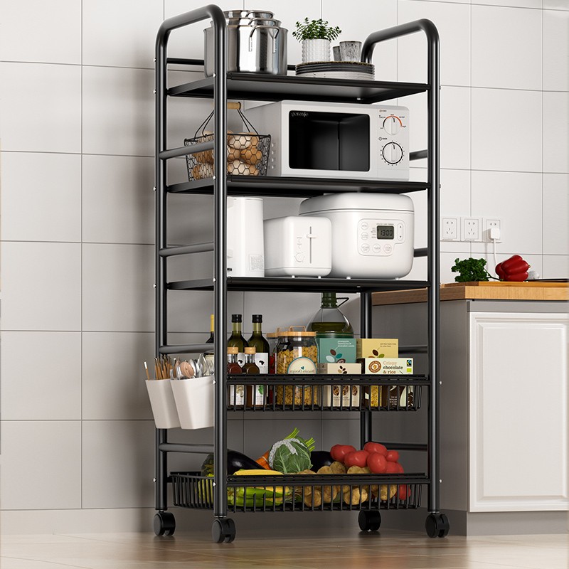 厨房置物架落地多层微波炉架子家用货架锅架蔬菜篮推车收纳储物架