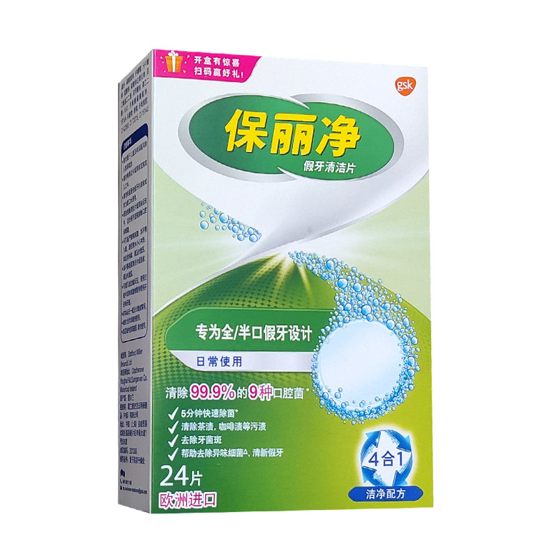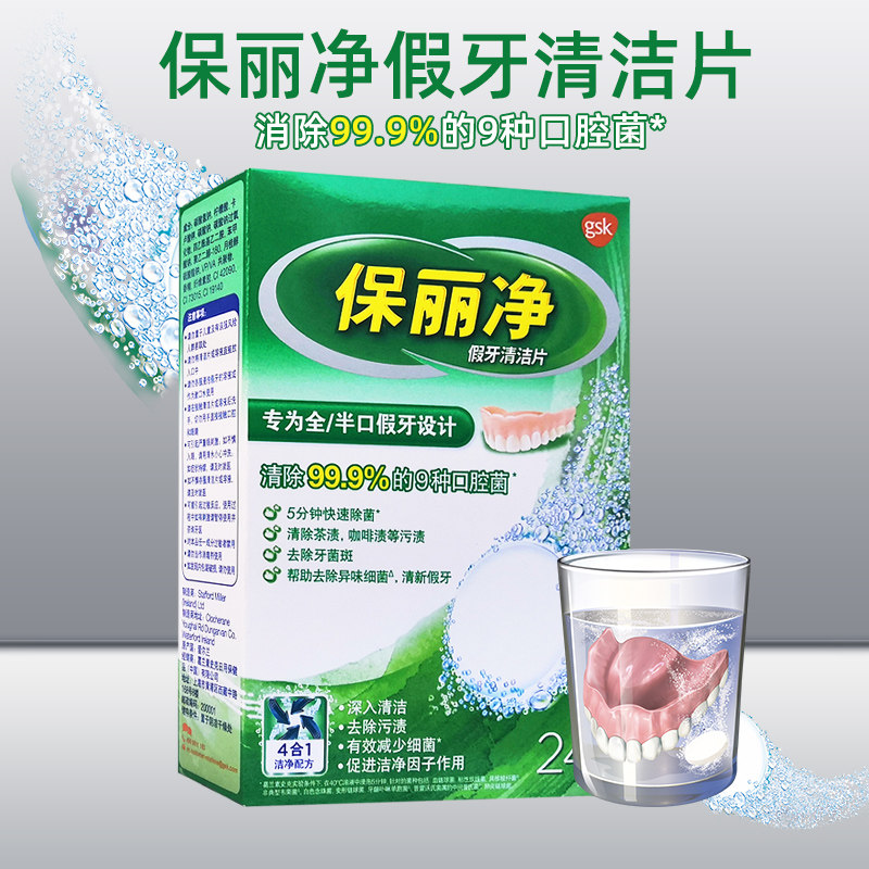 保丽净假牙清洁片24送雅克菱12片全半口泡腾清洗正畸隐形牙套消毒
