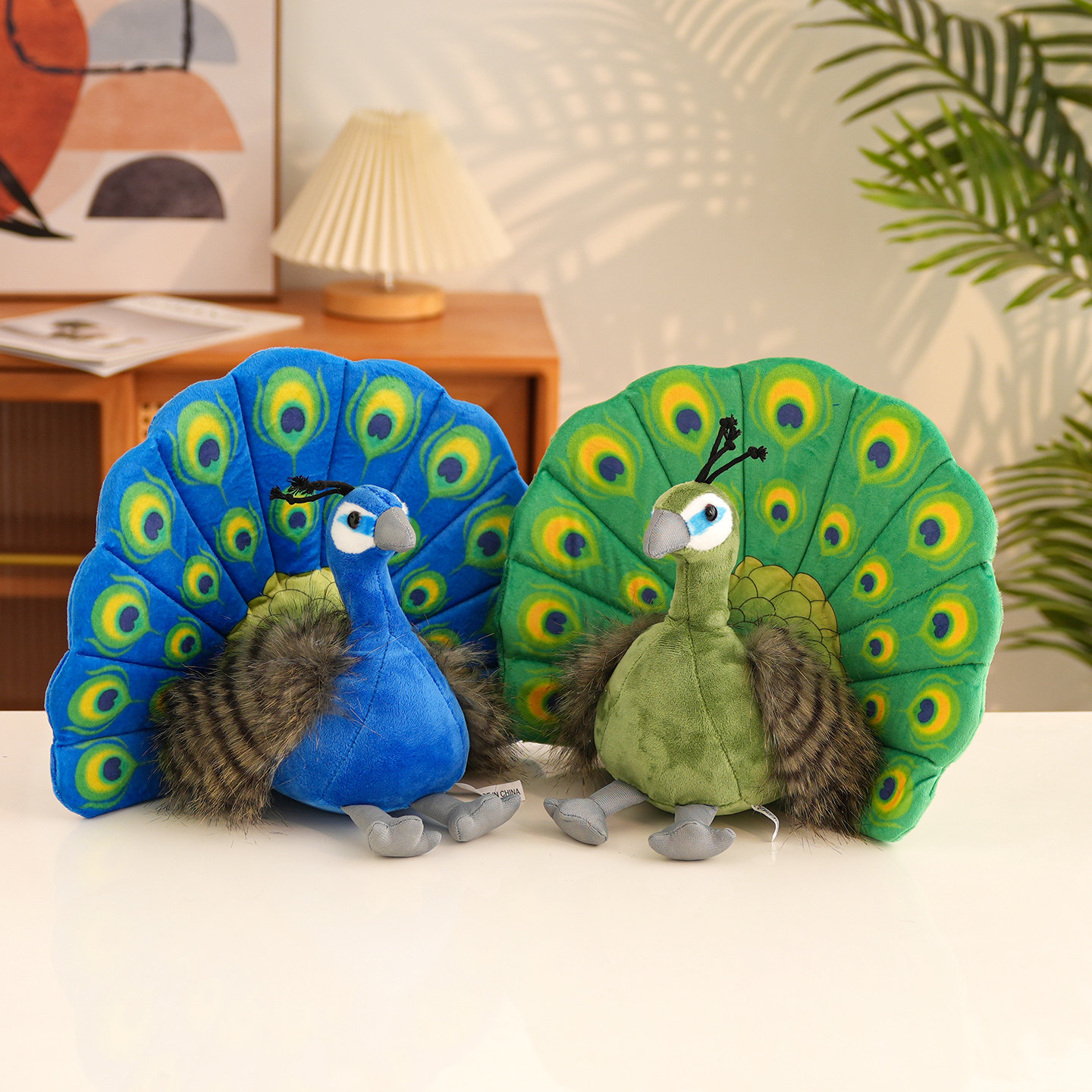 仿真绿孔雀公仔毛绒玩具可爱蓝孔雀玩偶装饰摆件儿童礼物小鸟娃娃