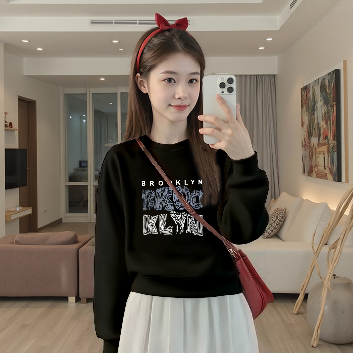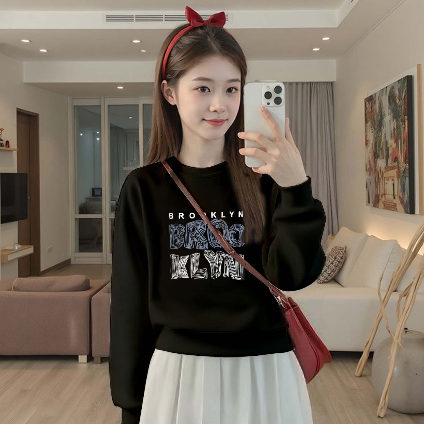 2025秋冬新款黑色加绒短款卫衣