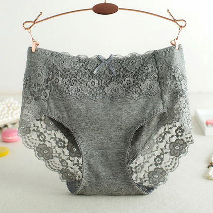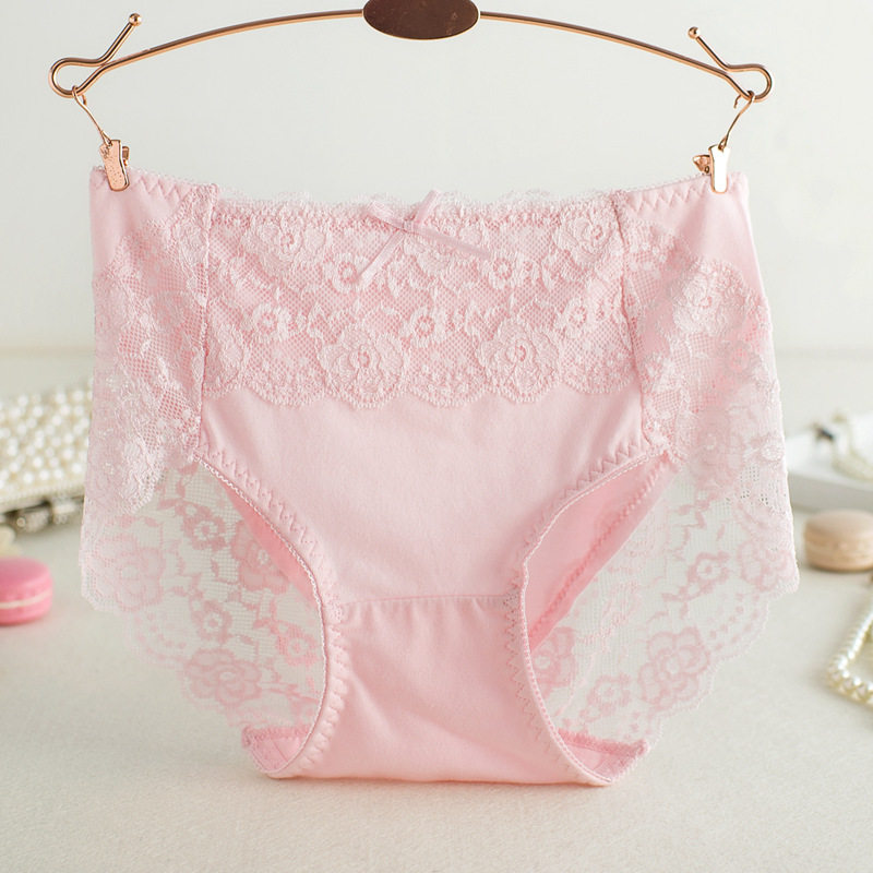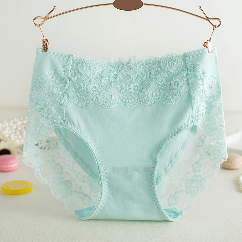 新品全棉中腰裆部蕾丝女内裤纯棉