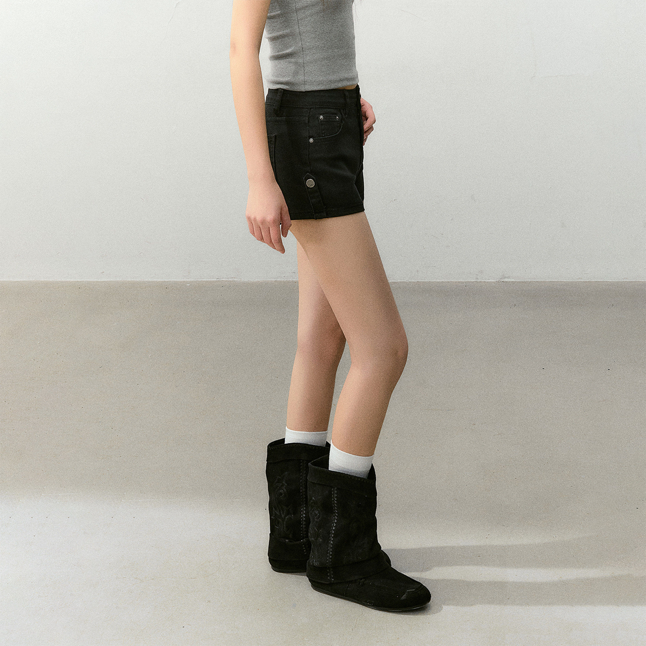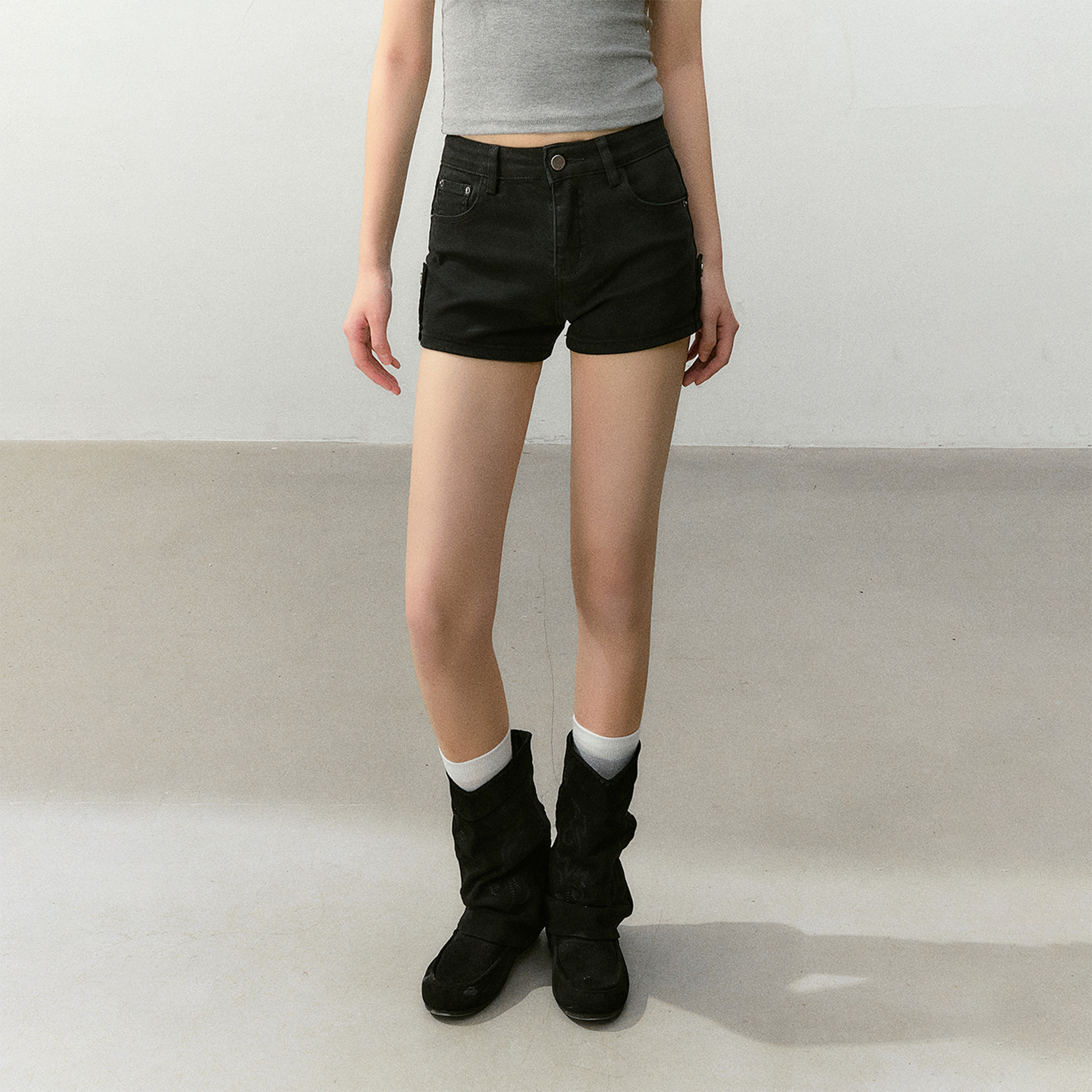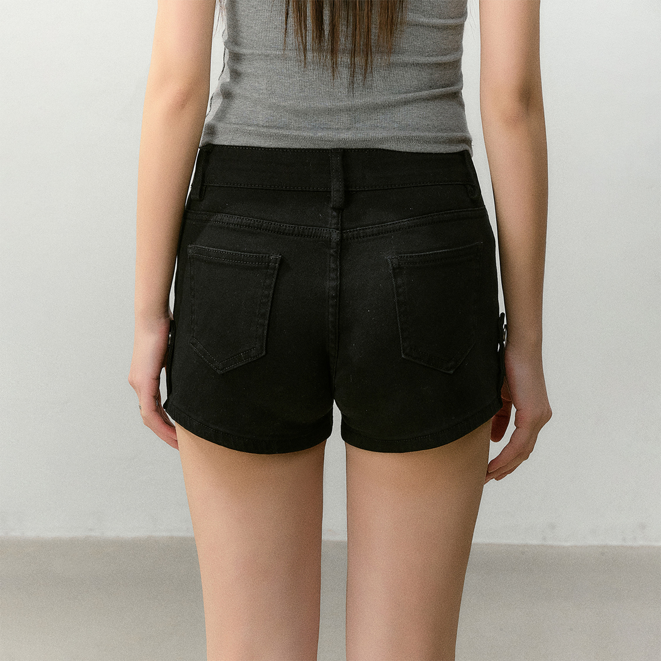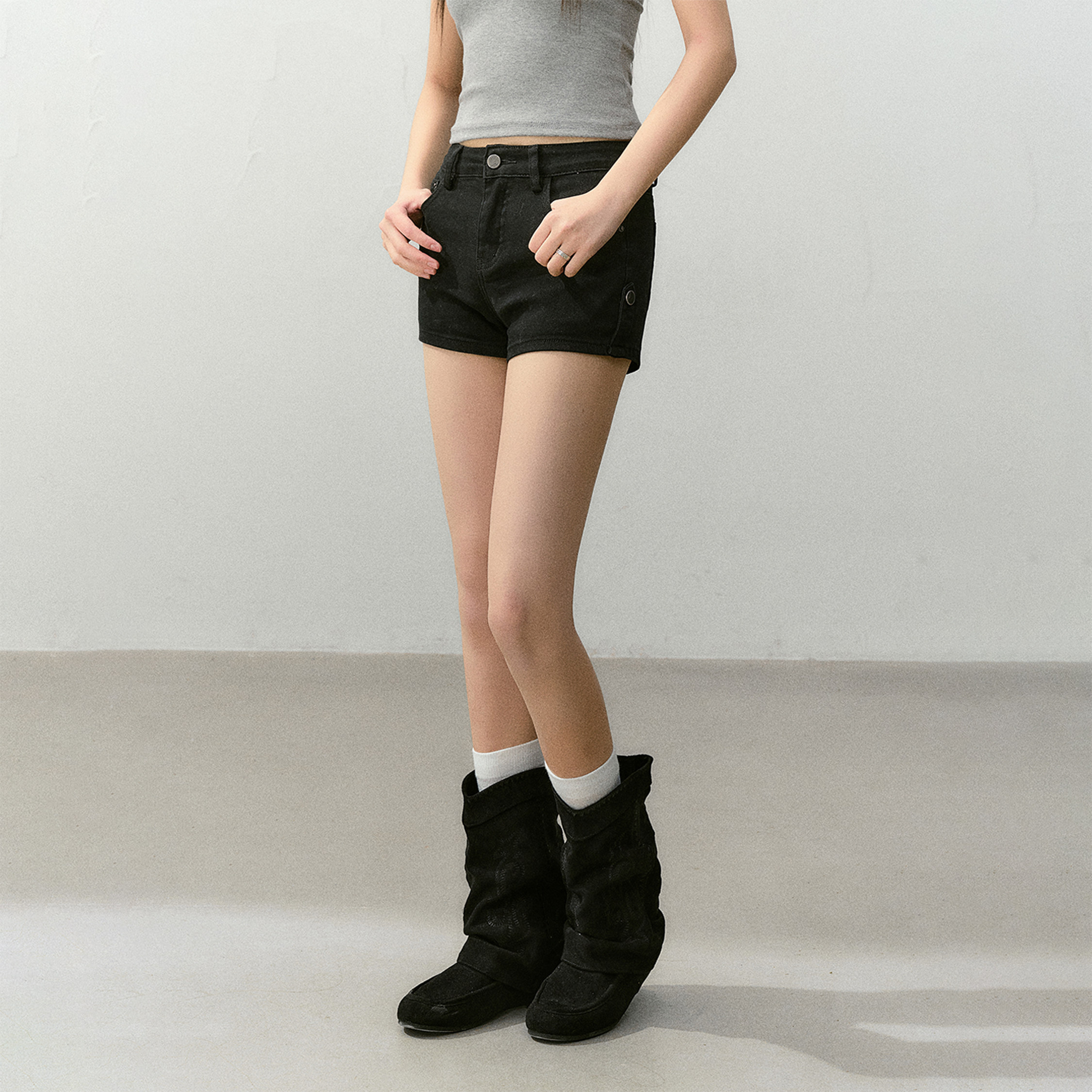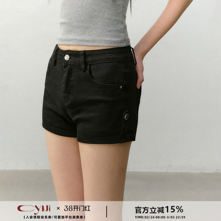 CyNi【黑莓提子酒】黑色百搭美式复古弹力高腰短裤显瘦丰胯垫短裤