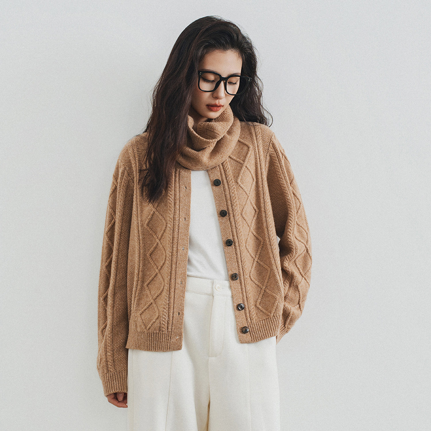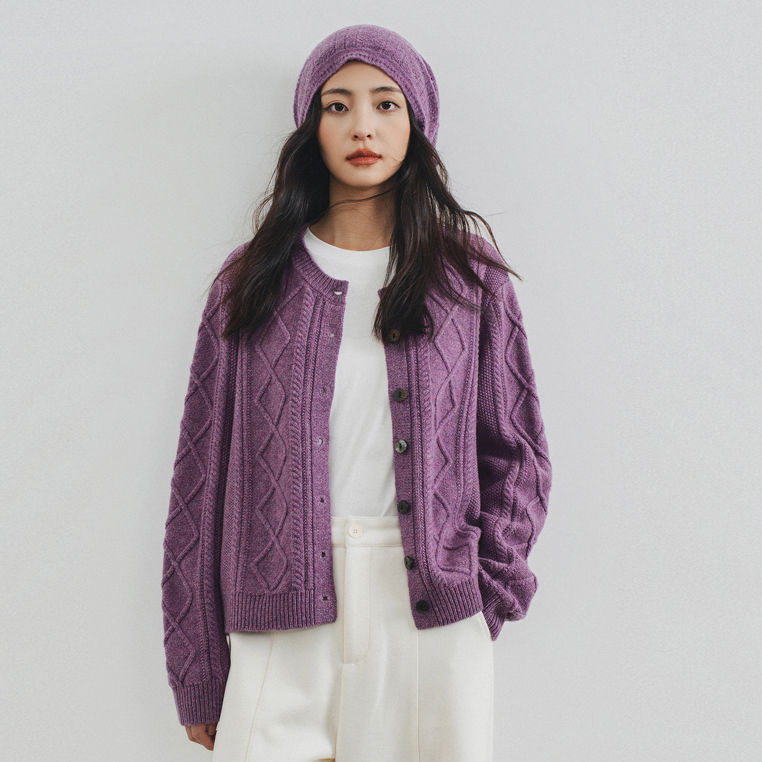 梭家|似晴天| 简约通勤多色绵羊毛针织开衫秋冬女百搭短外套