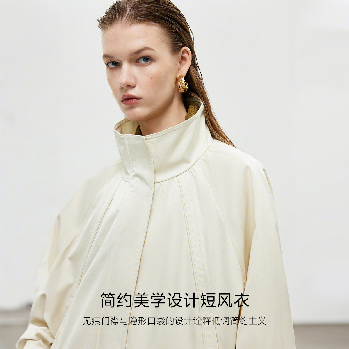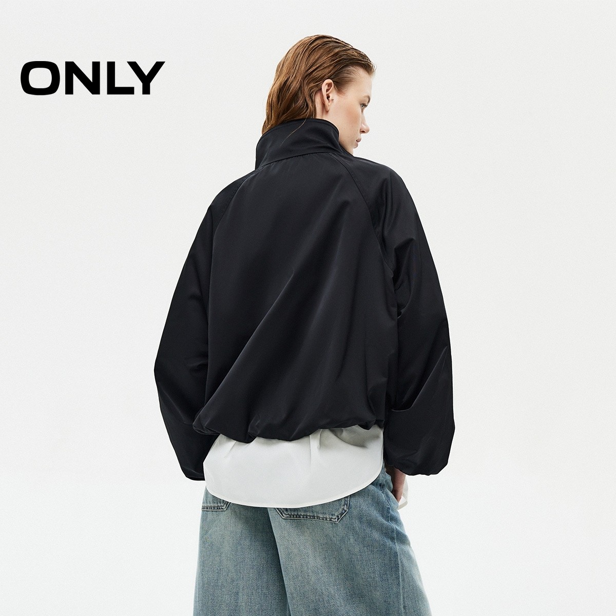ONLY2025冬新款纯色花苞设计立领宽松开衫风衣外套女|125336003