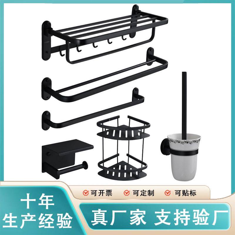 跨境不锈钢毛巾架卫浴挂件套装架置物架架架角浴巾免浴室纸巾打孔