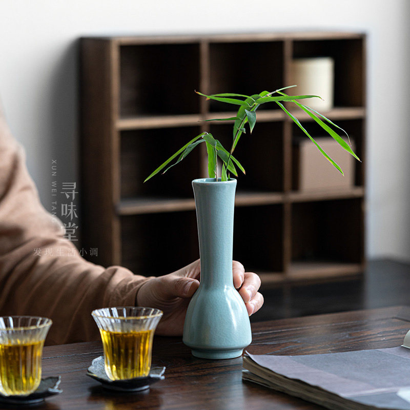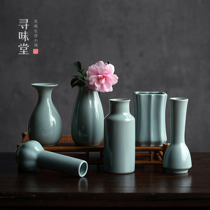 高档汝窑小花瓶|复古风经典小花器花插仿宋汝瓷陶瓷家居饰品摆件