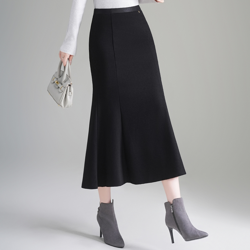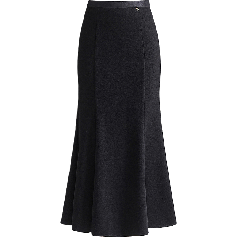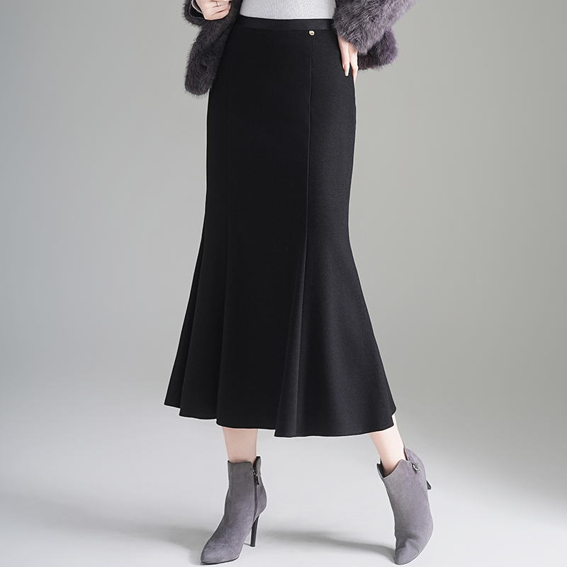 黑色毛呢半身裙鱼尾裙女加厚秋冬高腰中长款显瘦垂坠感a字包臀裙