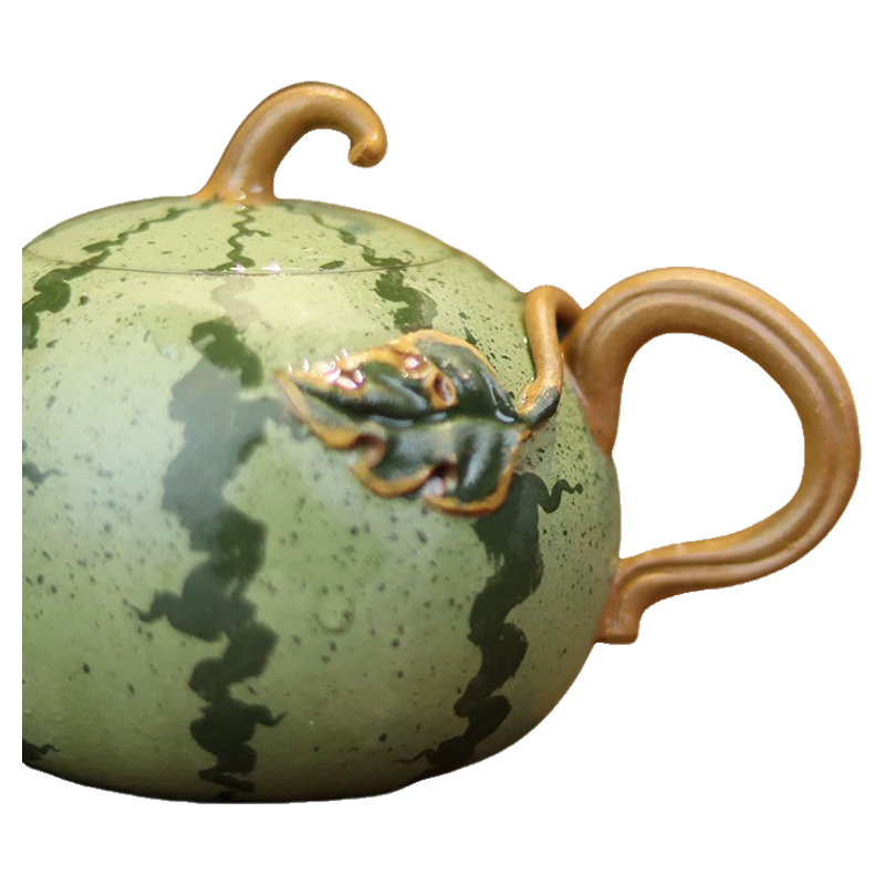 宜兴紫砂壶纯手工西瓜壶原矿段泥 绿泥粉浆150cc小品功夫茶具