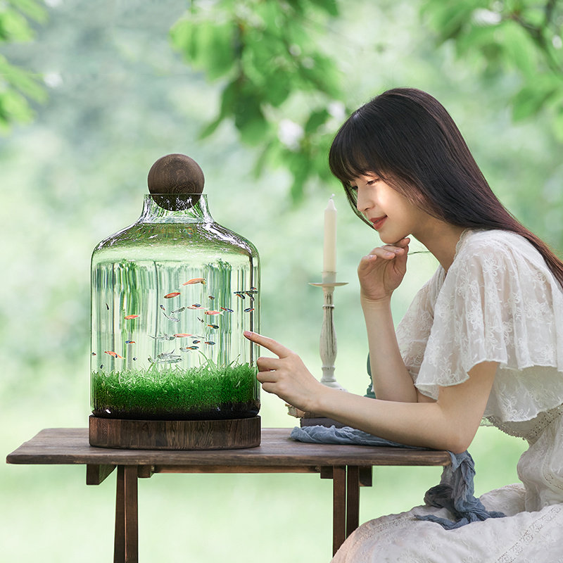 创意缸水培植物鱼缸水草种子籽懒人微景观生态瓶桌面生态鱼缸玻璃