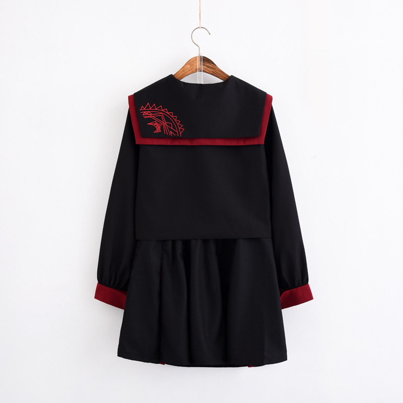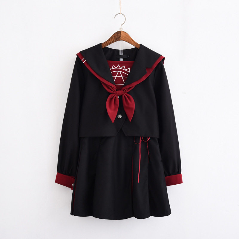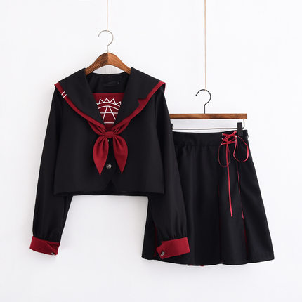 川岛私立学院K制服学生校班服学院风软妹 暗黑水手服长短袖套装套