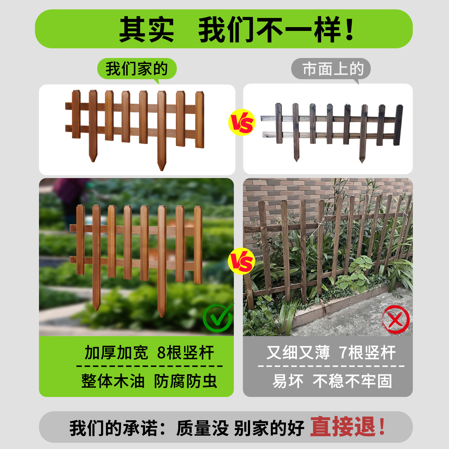 防腐木栅栏花园围栏篱笆户外庭院护栏室外乡村菜园实木花坛小栏杆