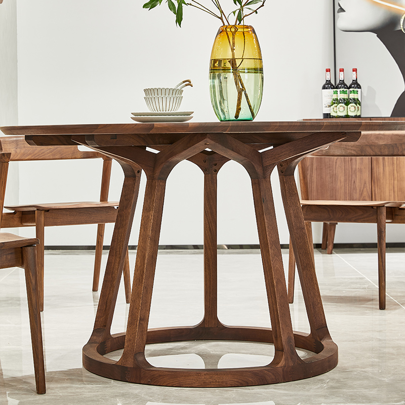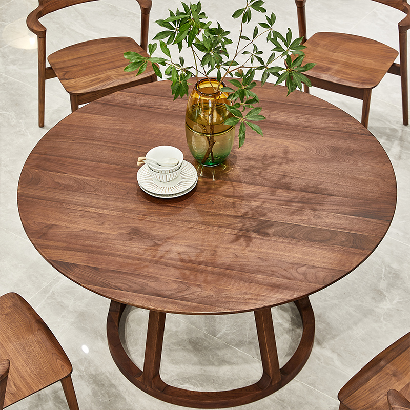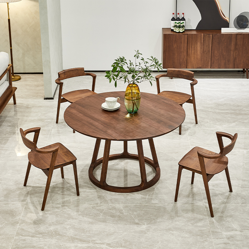 北美黑胡桃木全实木餐桌椅组合简约家用圆桌6人圆形北欧餐厅家具
