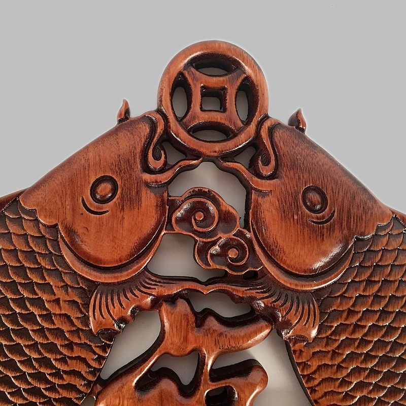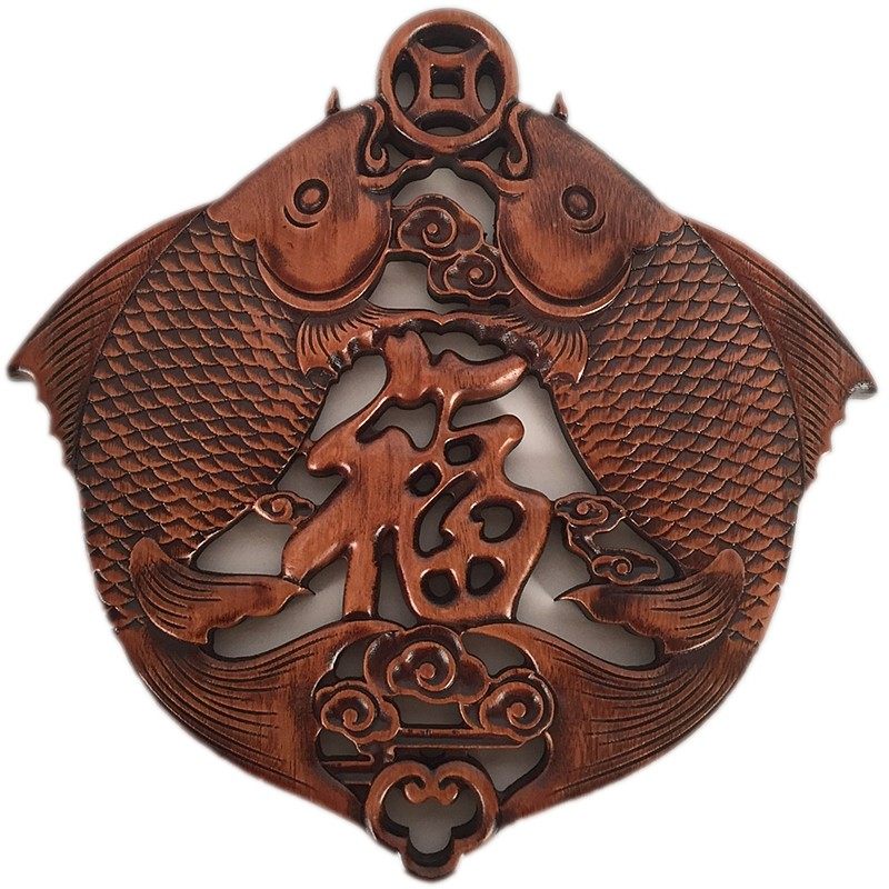 东阳木雕挂件玄关客厅卧室餐厅房间中式香樟木鲤鱼年年有余装饰品