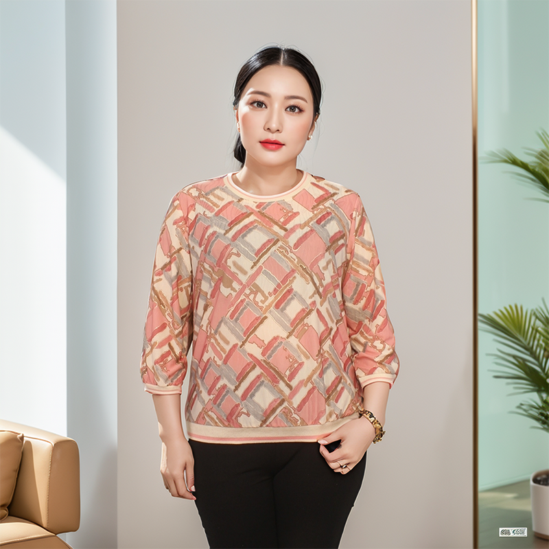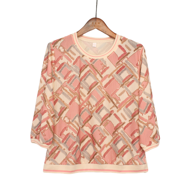 中老年人春夏装妈妈宽松圆领短款女装七分袖薄款中袖女士T恤上衣