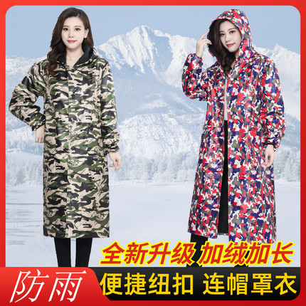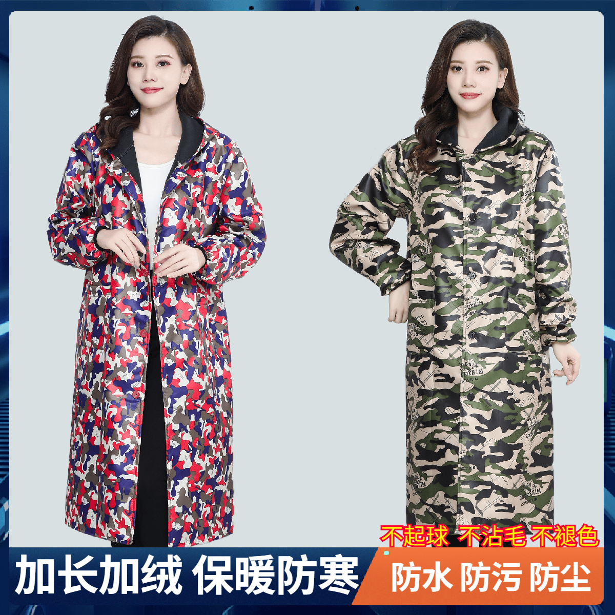 加长款加绒大人罩衣过膝女士男士加厚厨房围裙防水外套成人工作服