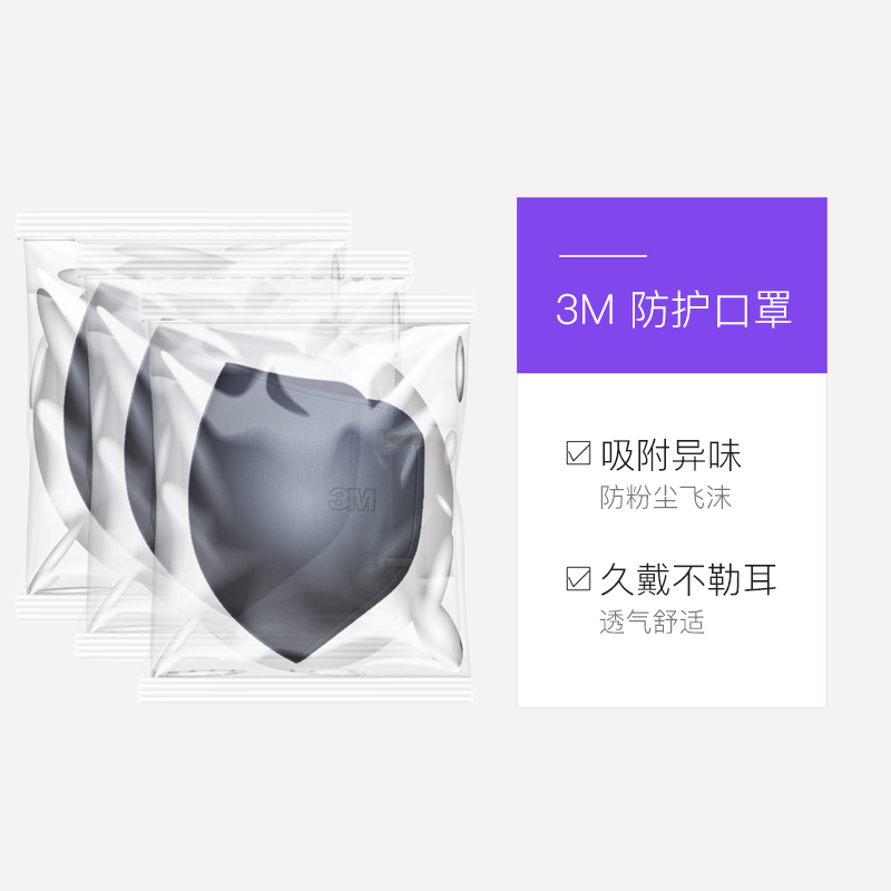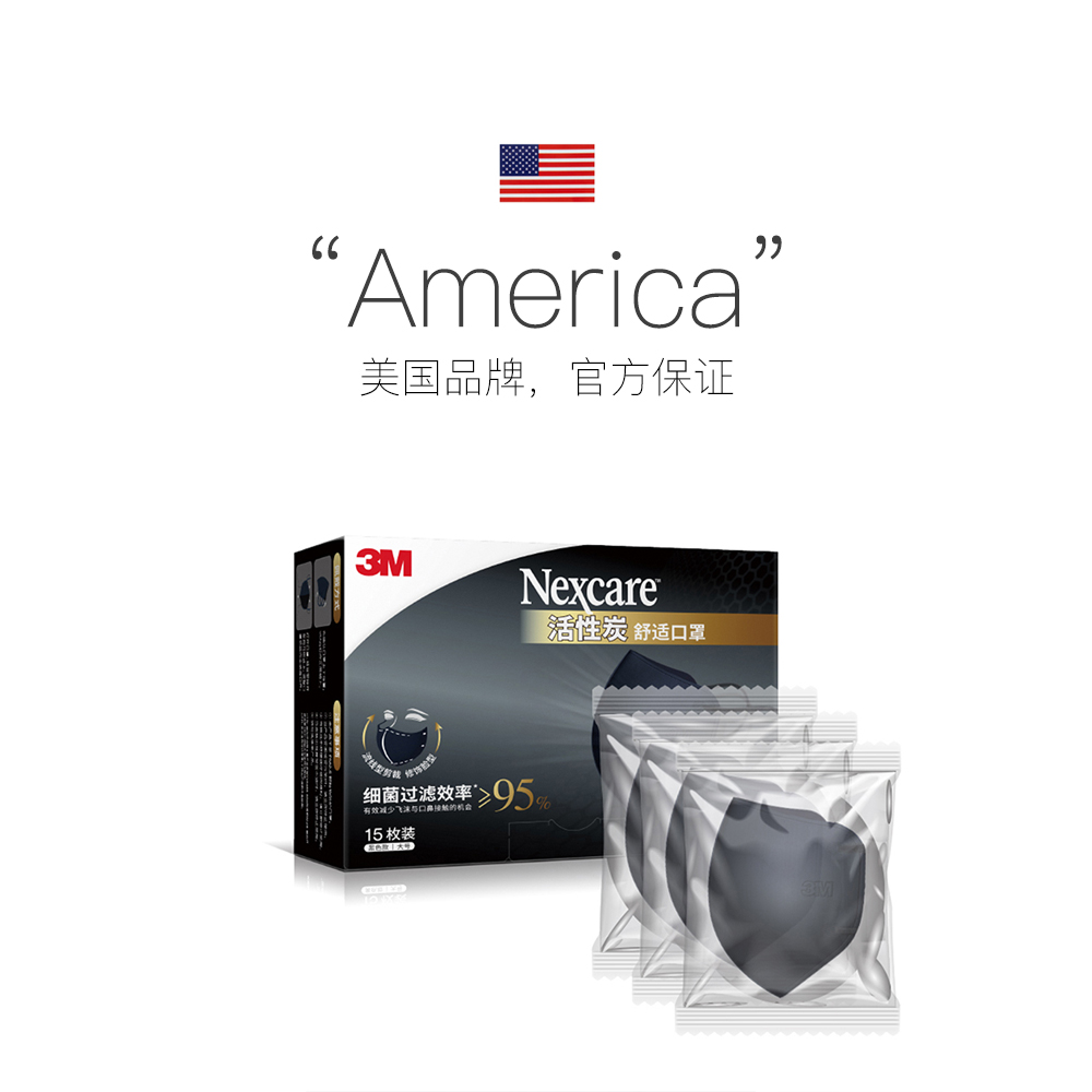 【自营】3M耐适康活性炭KN95一次性口罩防工业粉尘异味3D薄款透气