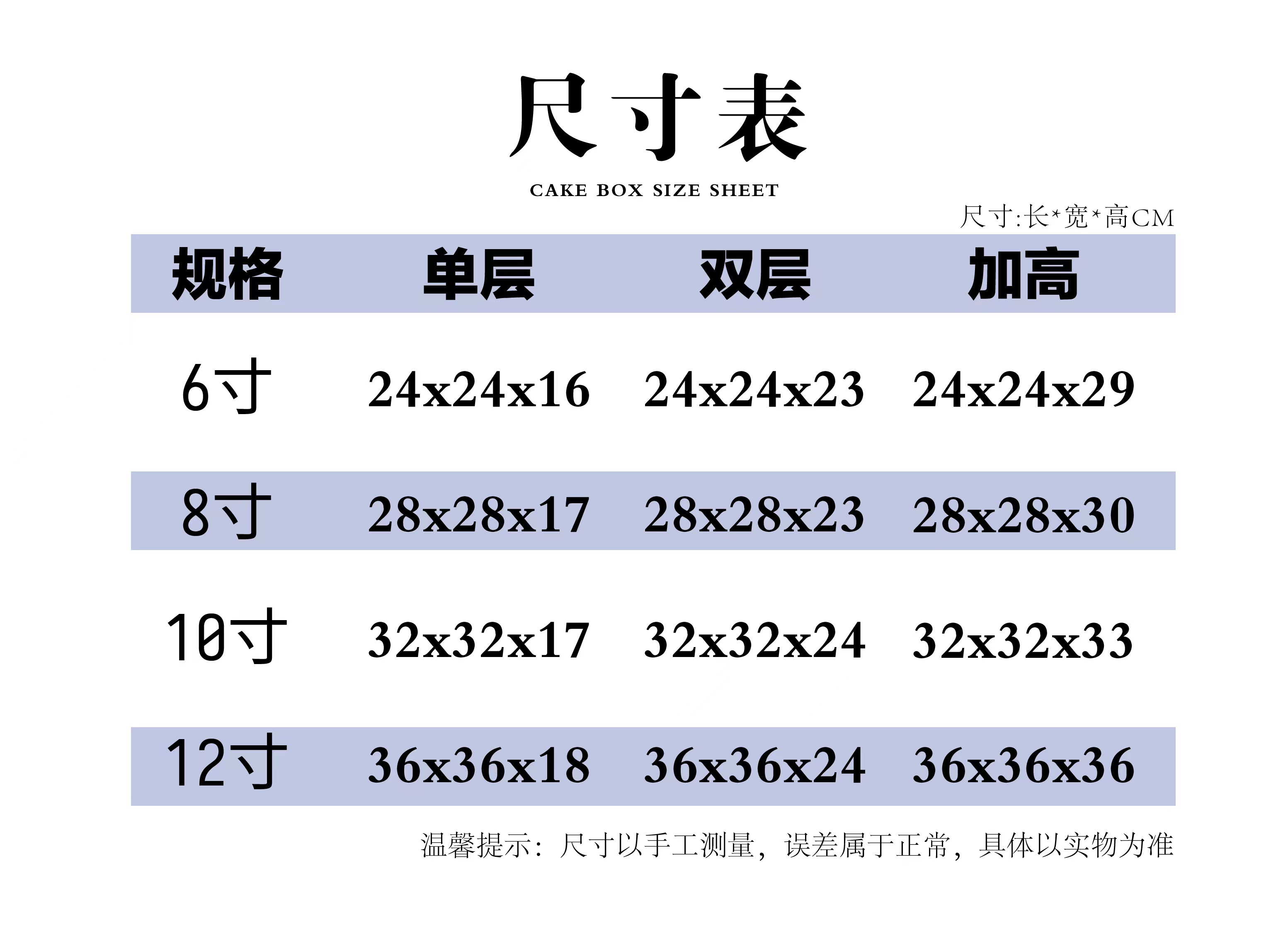 半透明生日蛋糕盒子6/8/10/12寸单双层加高芭比定制包装盒水墨色