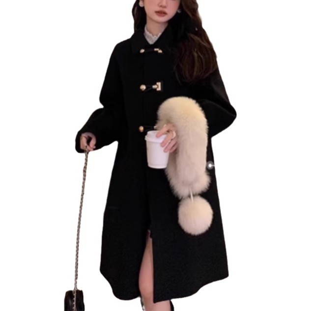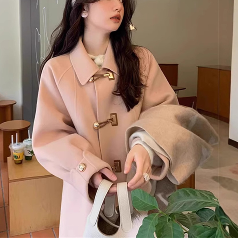 牛角扣双面羊毛呢子大衣女2025秋冬新款名媛宽松小个子毛呢外套
