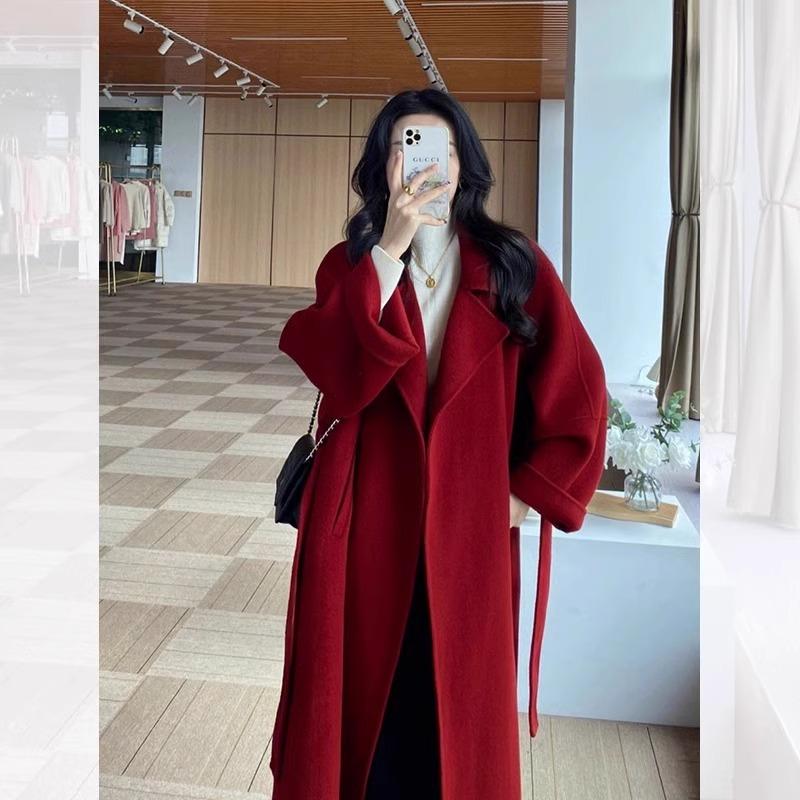 新年红色双面羊绒大衣女过年新娘年当天过门回门敬酒服毛呢外套女