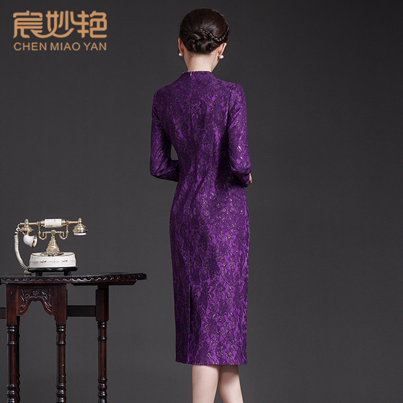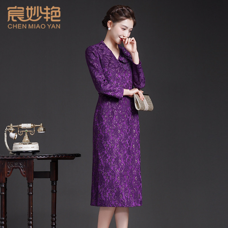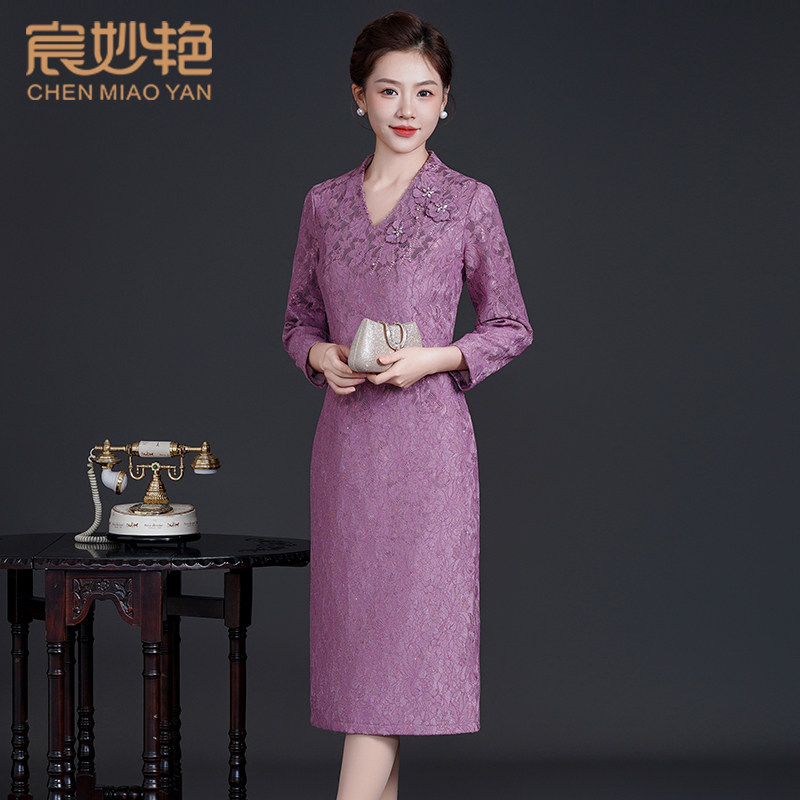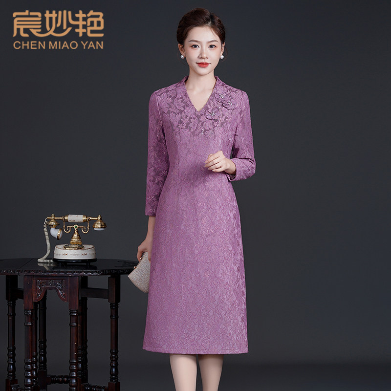 宸妙艳妈妈装2024新款女秋冬气质连衣裙中长款长袖修身显瘦裙子女