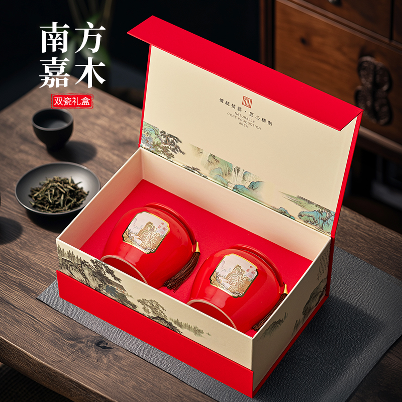 新款高档陶瓷罐通用茶叶包装盒半斤装红茶绿茶茶叶礼盒空盒可定制