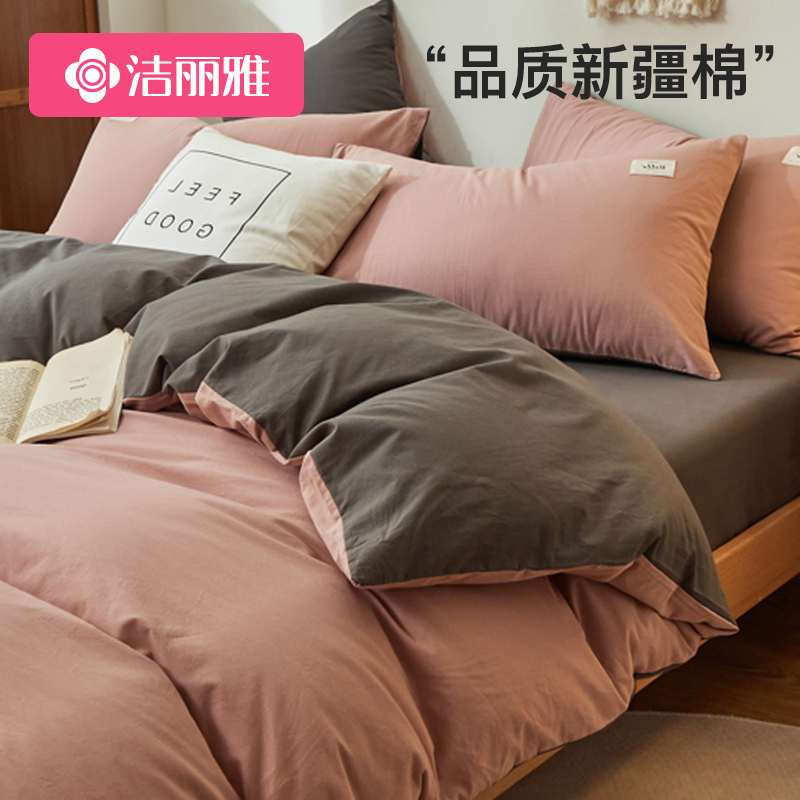 洁丽雅全棉水洗棉四件套床单被套100纯棉床上三件套被罩四季可用