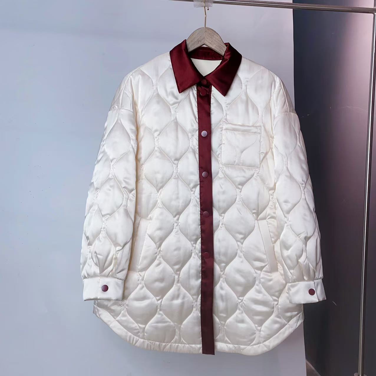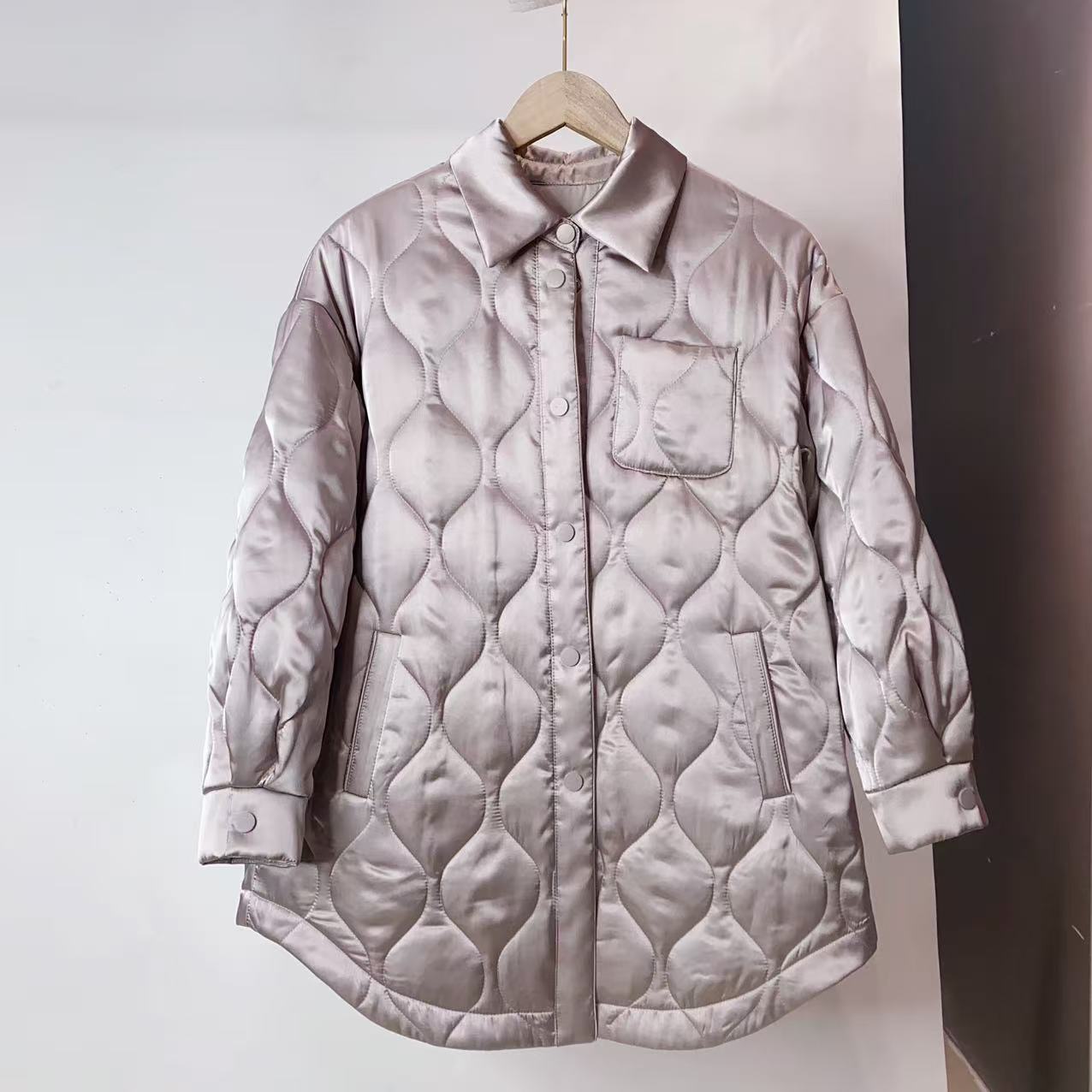 衬衫款真丝缎面蚕丝棉服外套女轻薄中长0860长78