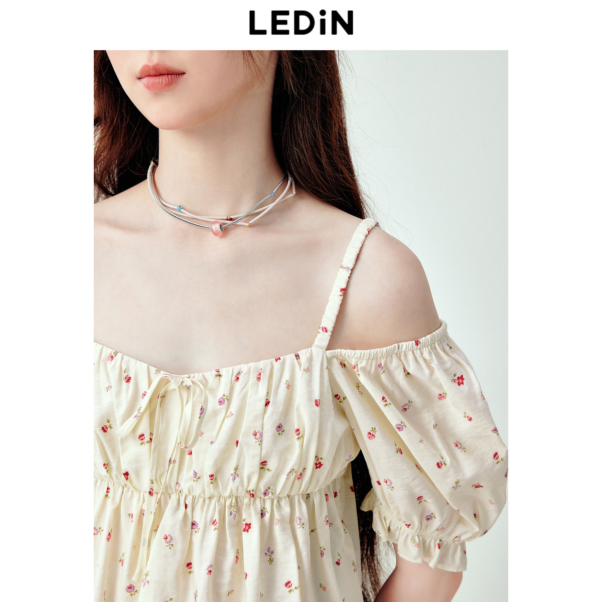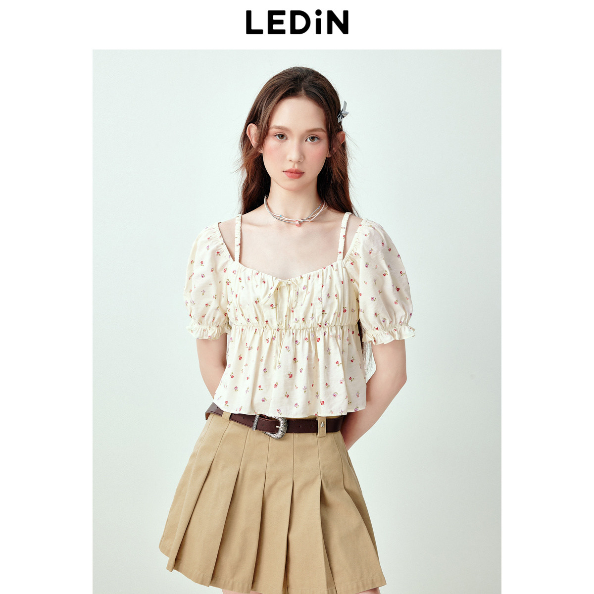 乐町甜美浪漫碎花雪纺衫女夏季新款A版小方领设计感超仙上衣