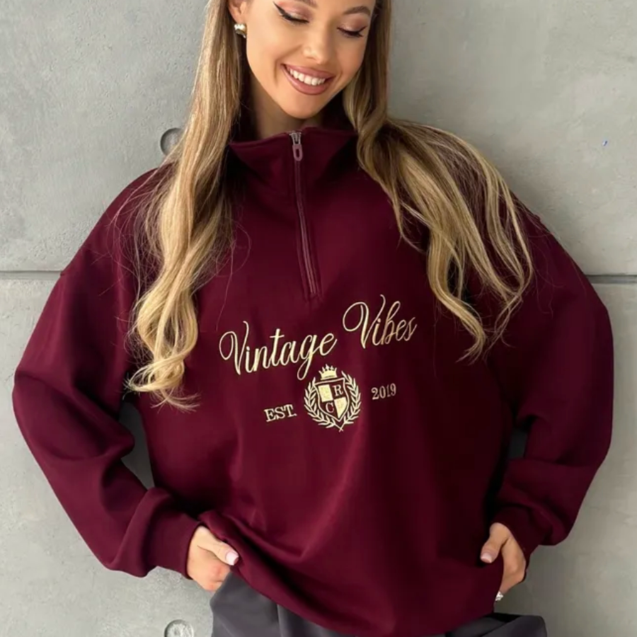 冬季洋气保暖卫衣女欧美加绒加厚翻领半拉链宽松百搭气质小众外套