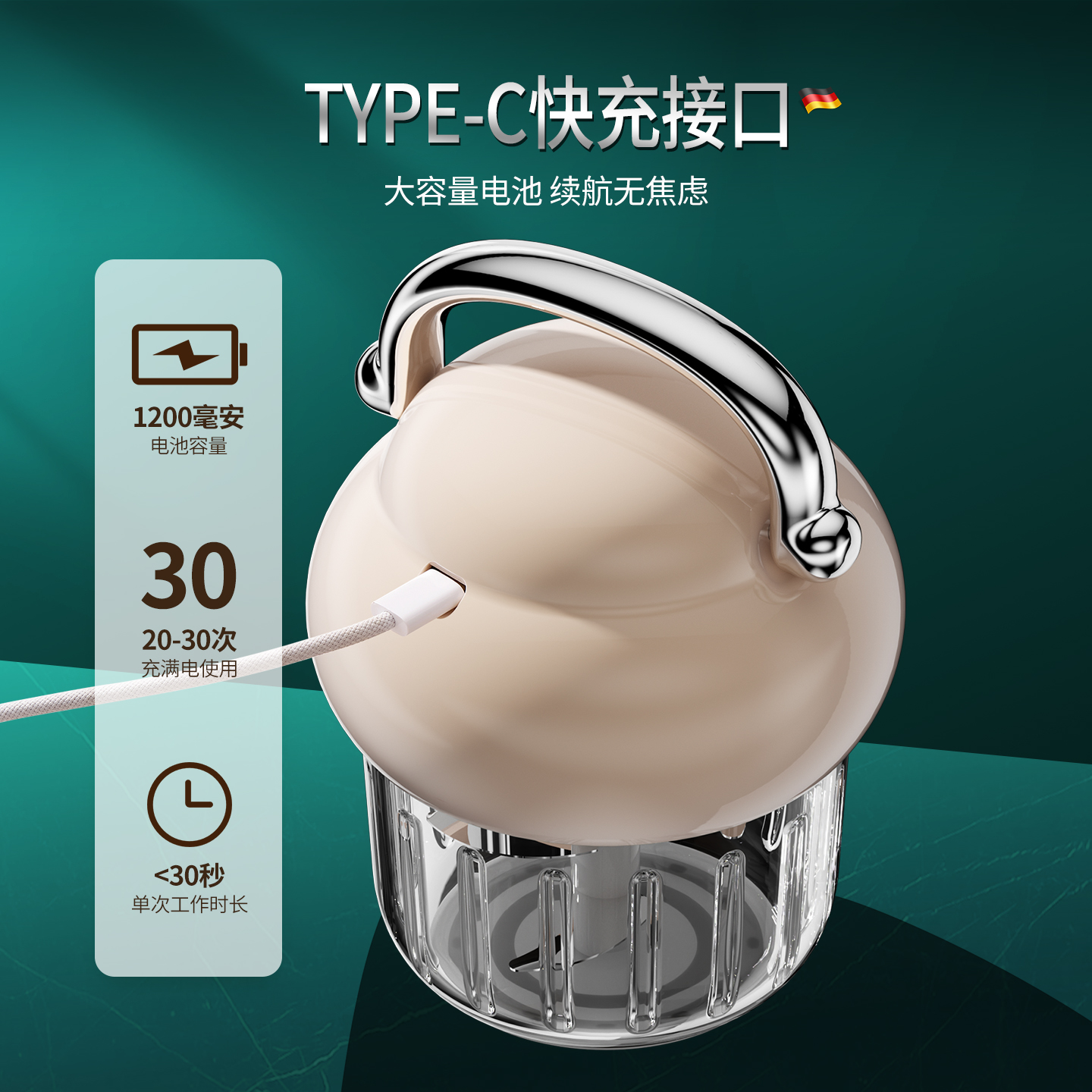 德国电动捣蒜器蒜蓉捣碎机家用搅蒜泥神器小型压蒜末打蒜搅碎机