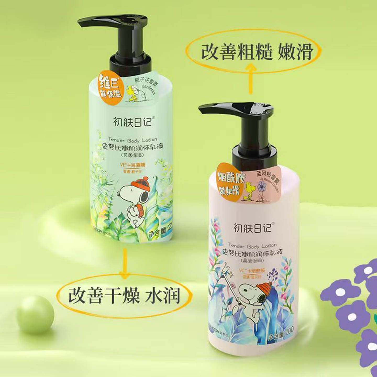 史努比嫩肌身体乳液栀子花补水滋润蓝风铃提亮滋养舒缓保湿润体乳