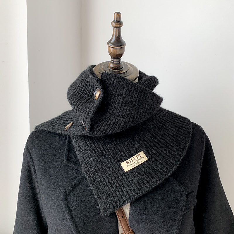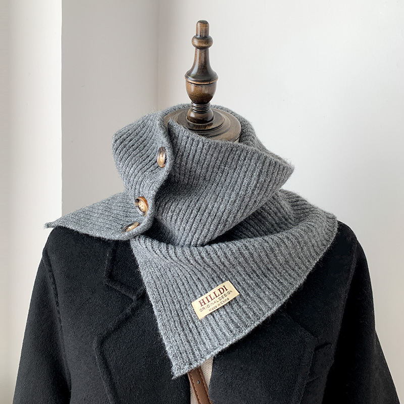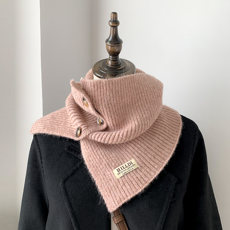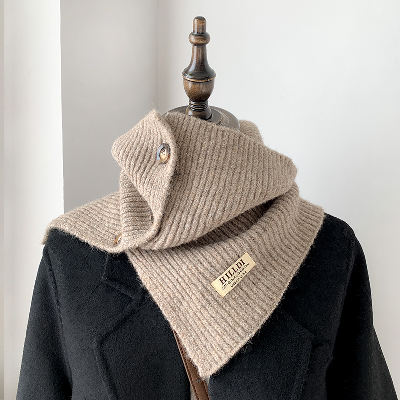 秋冬纽扣小围脖女开叉披肩围巾