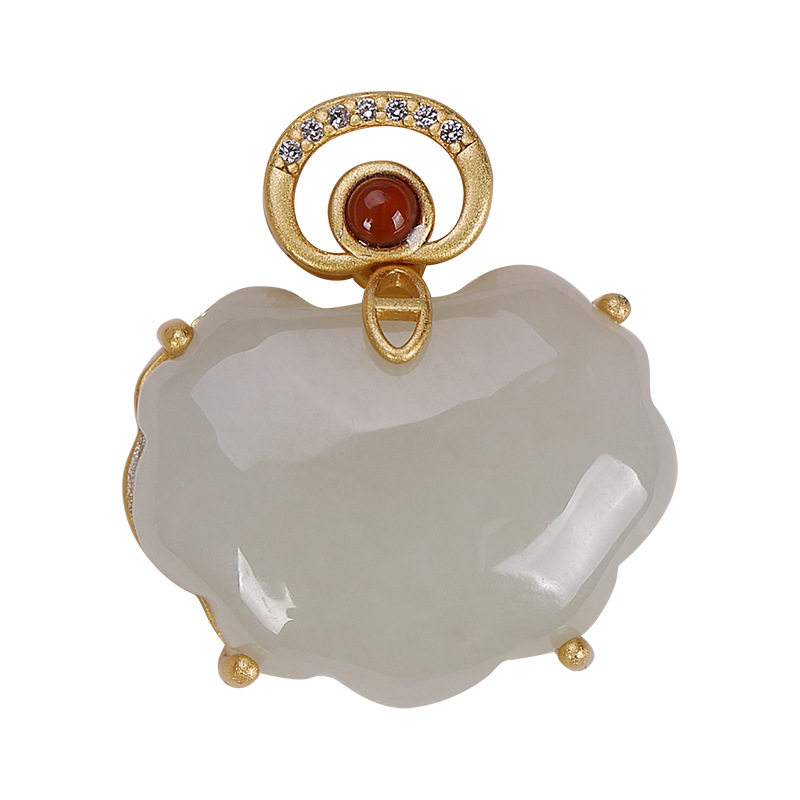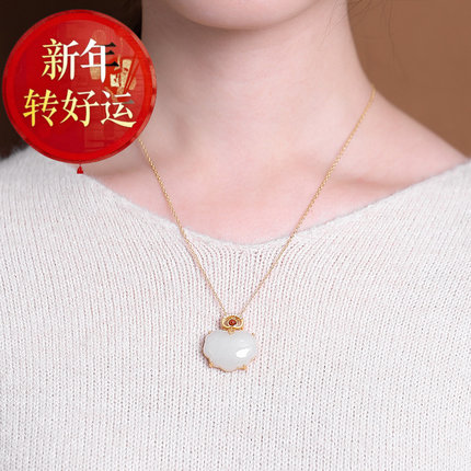 【好运】s925纯银故宫上新白玉古韵吉祥长命锁古典优雅高级吊坠/