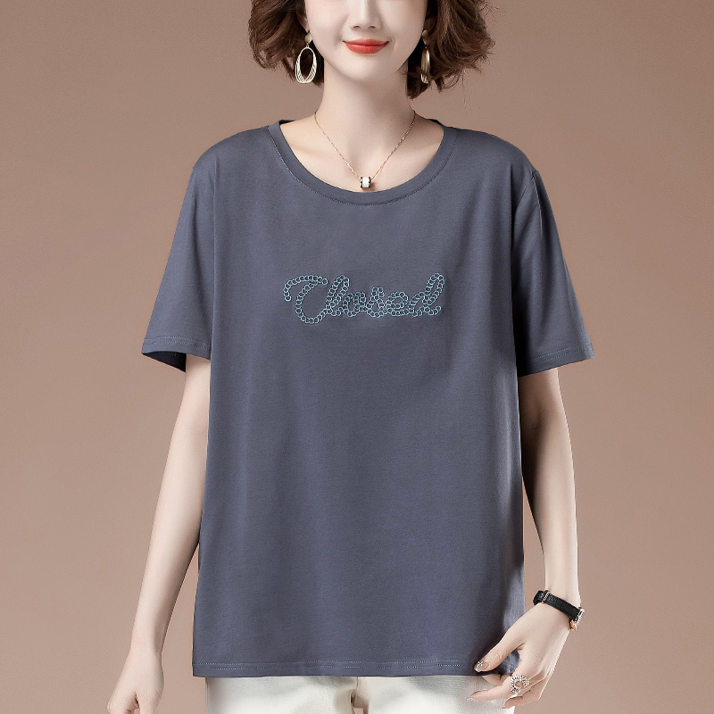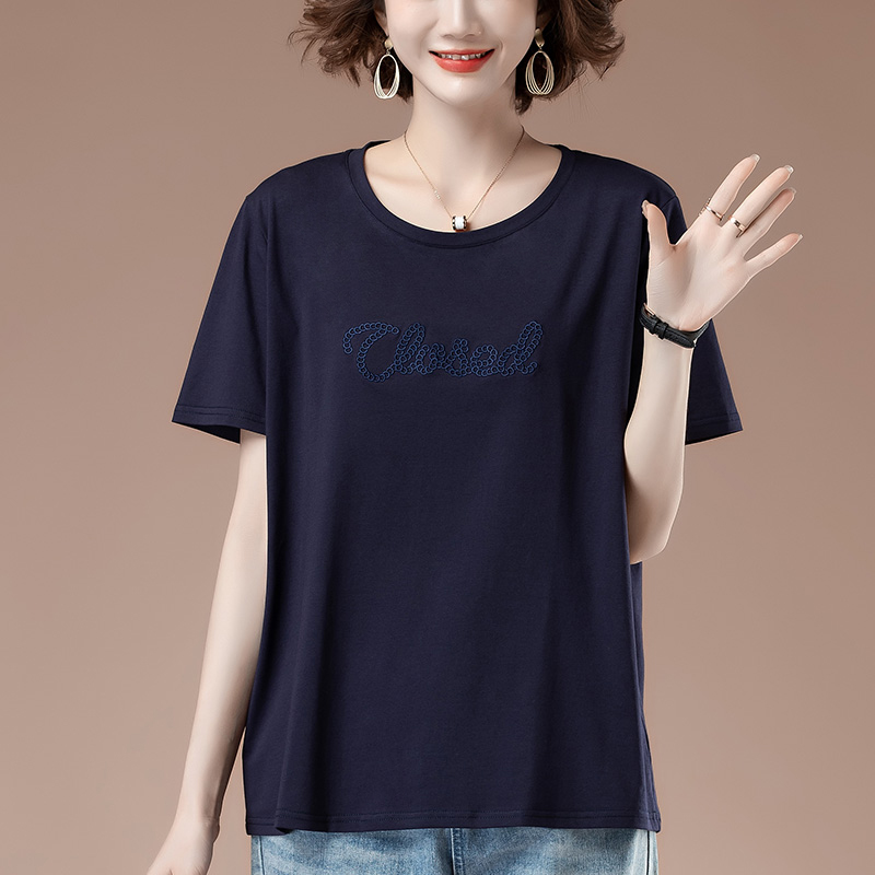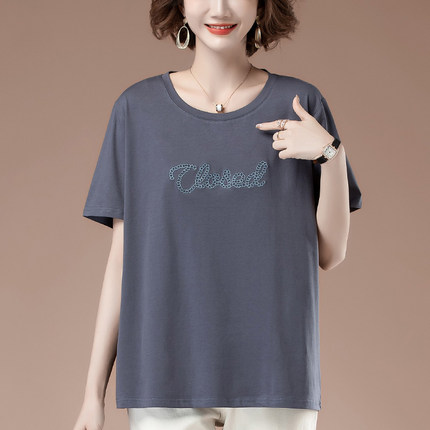 短袖t恤女夏季新款加肥加大码女装宽松中年妈妈全棉百搭显瘦体恤