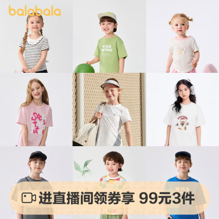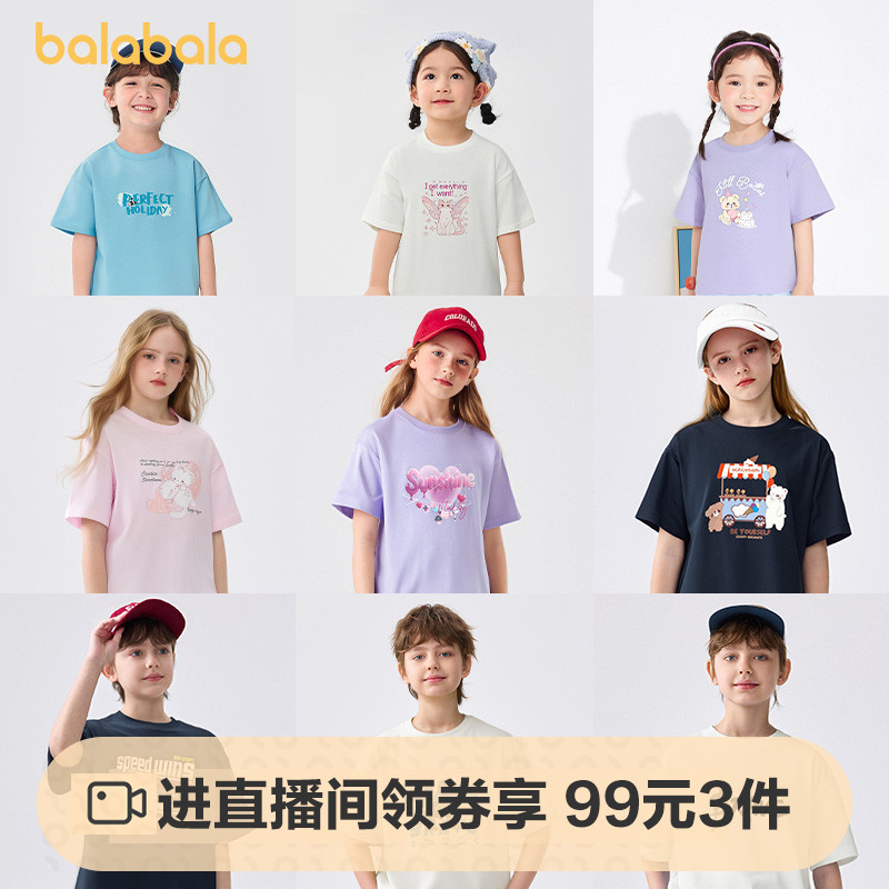【99元3件】巴拉巴拉童装儿童短袖t恤男童长袖T恤女童上衣亲子装