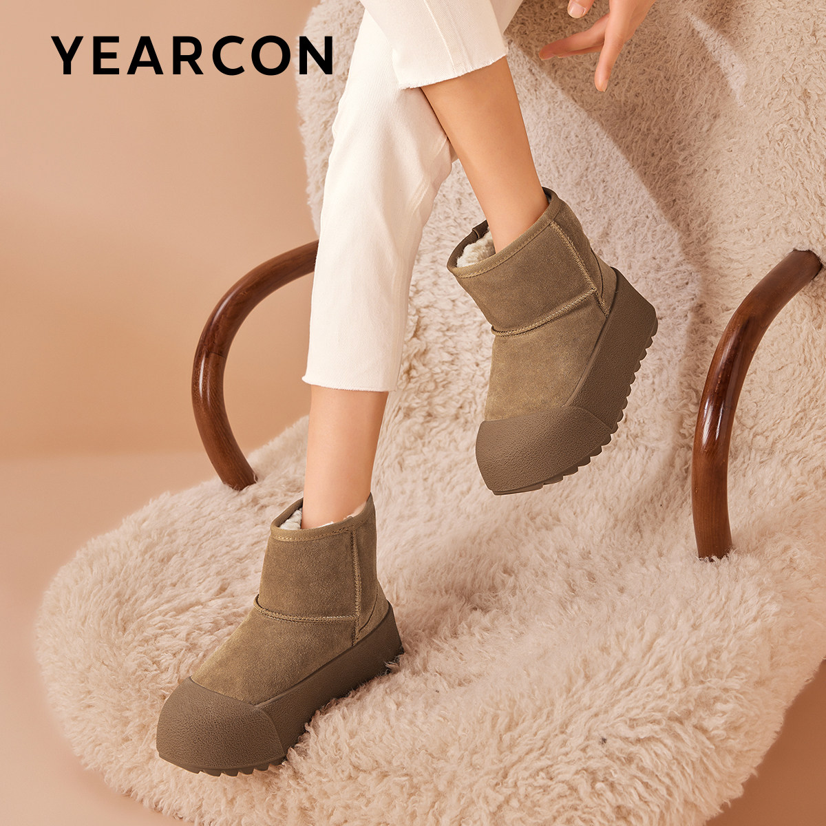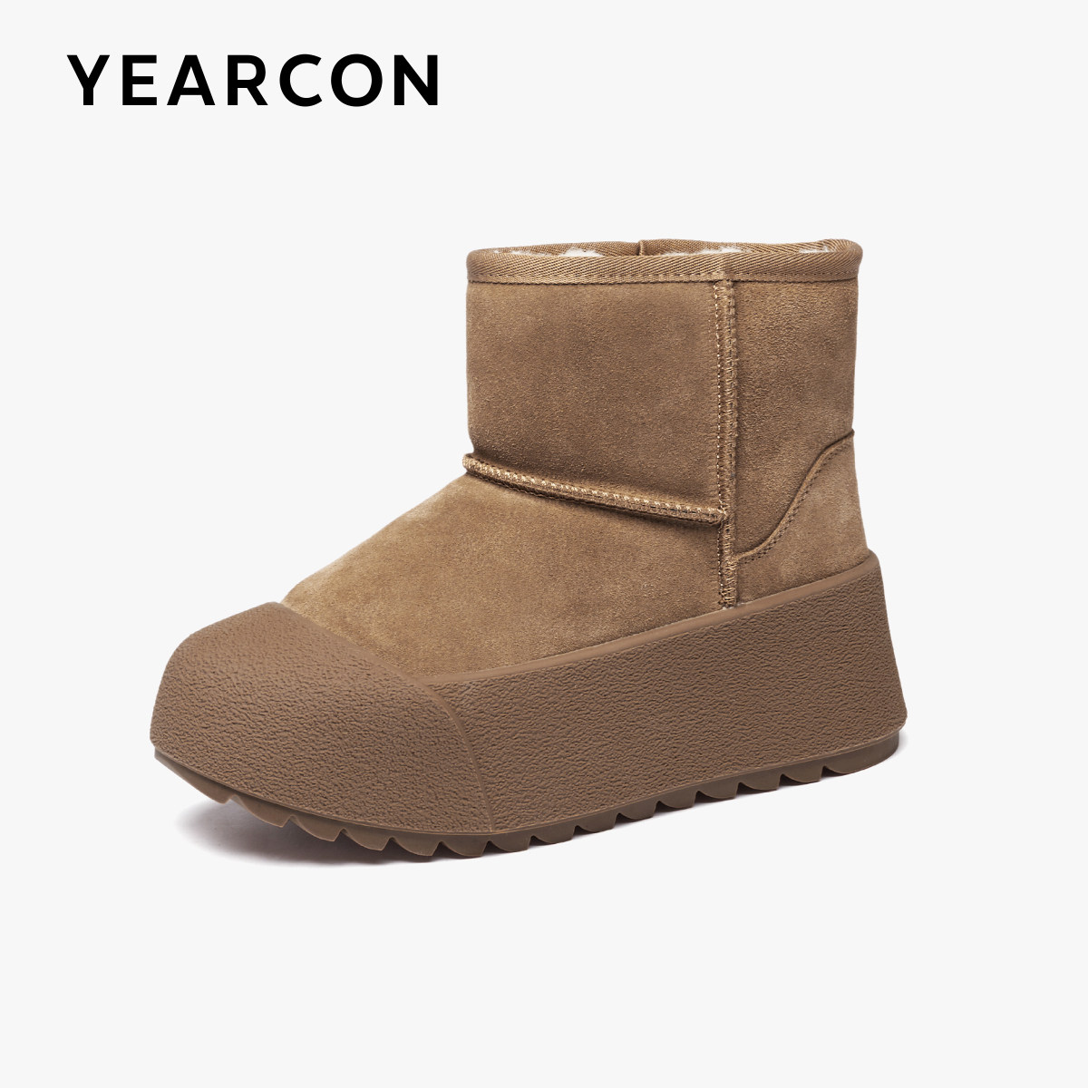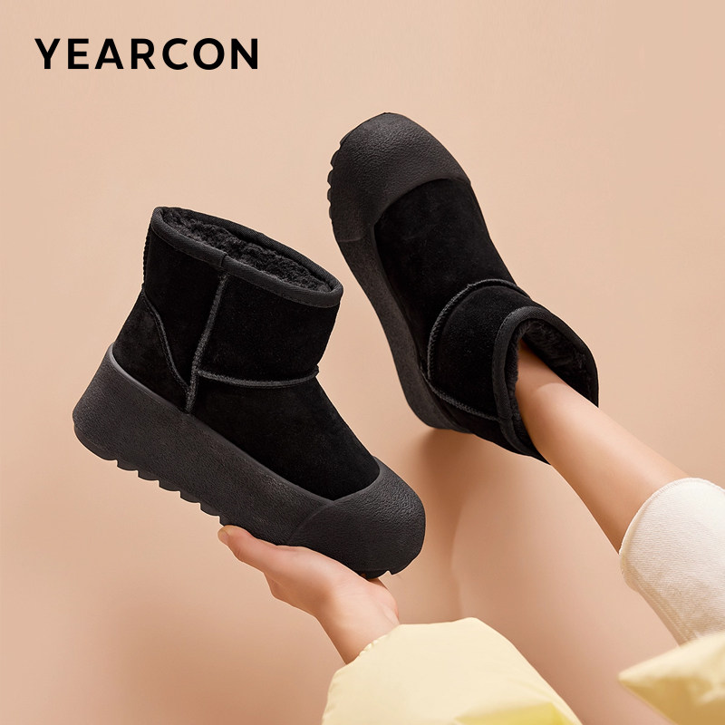 意尔康真皮加绒小丑雪地靴女2025新款冬增高厚底保暖大头短靴雨靴