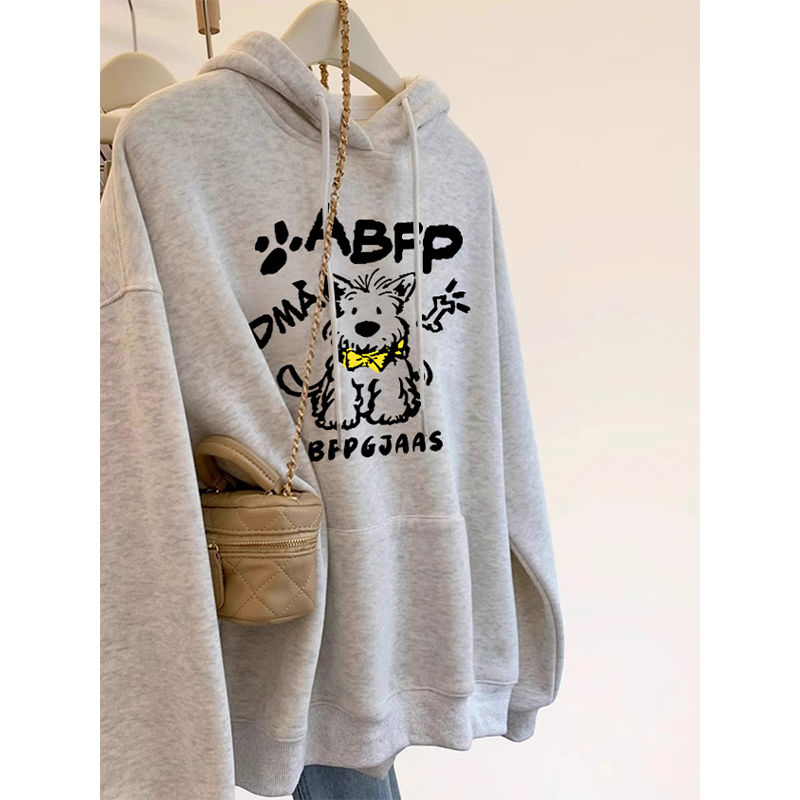 100%纯棉慵懒风连帽卫衣女2025春秋新款日系可爱学生宽松加绒外套