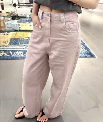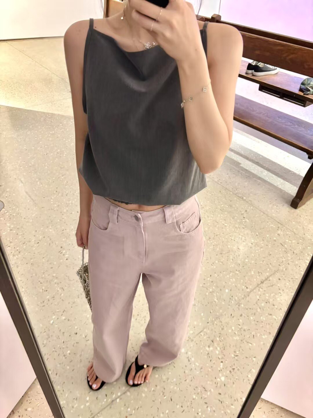 韩系设计师定制款慵懒舒适百搭9分烟粉色牛仔裤女小个子25夏款ins