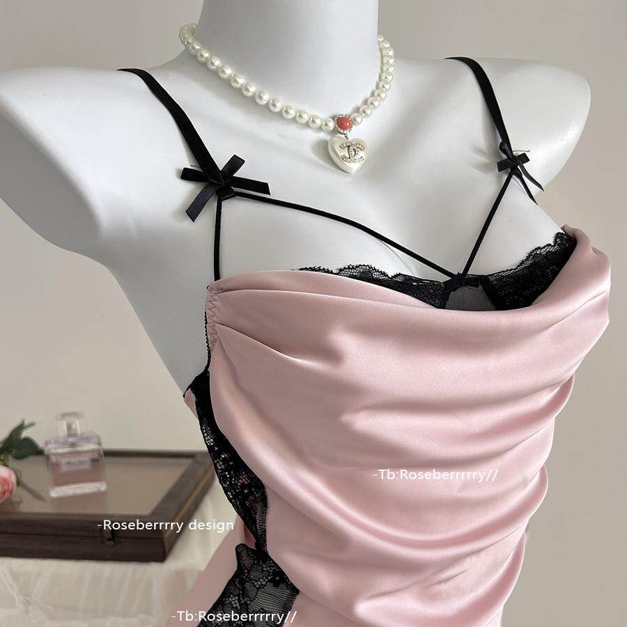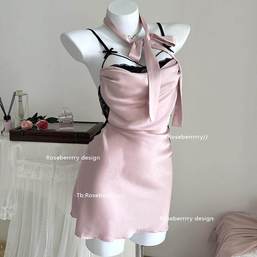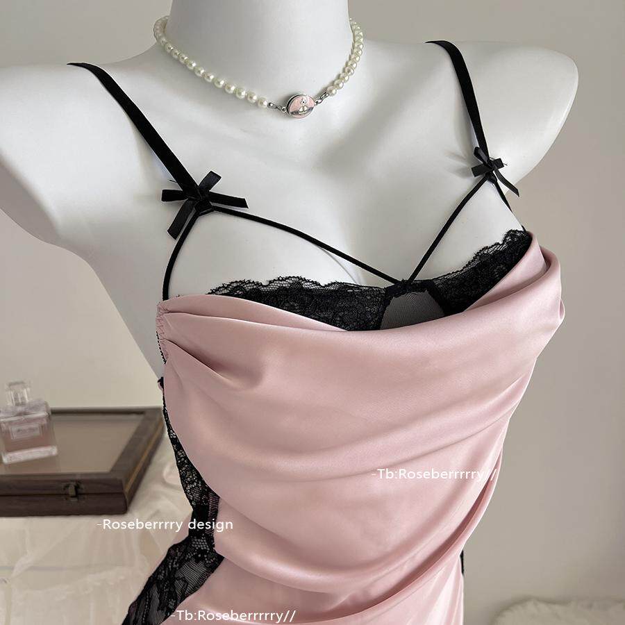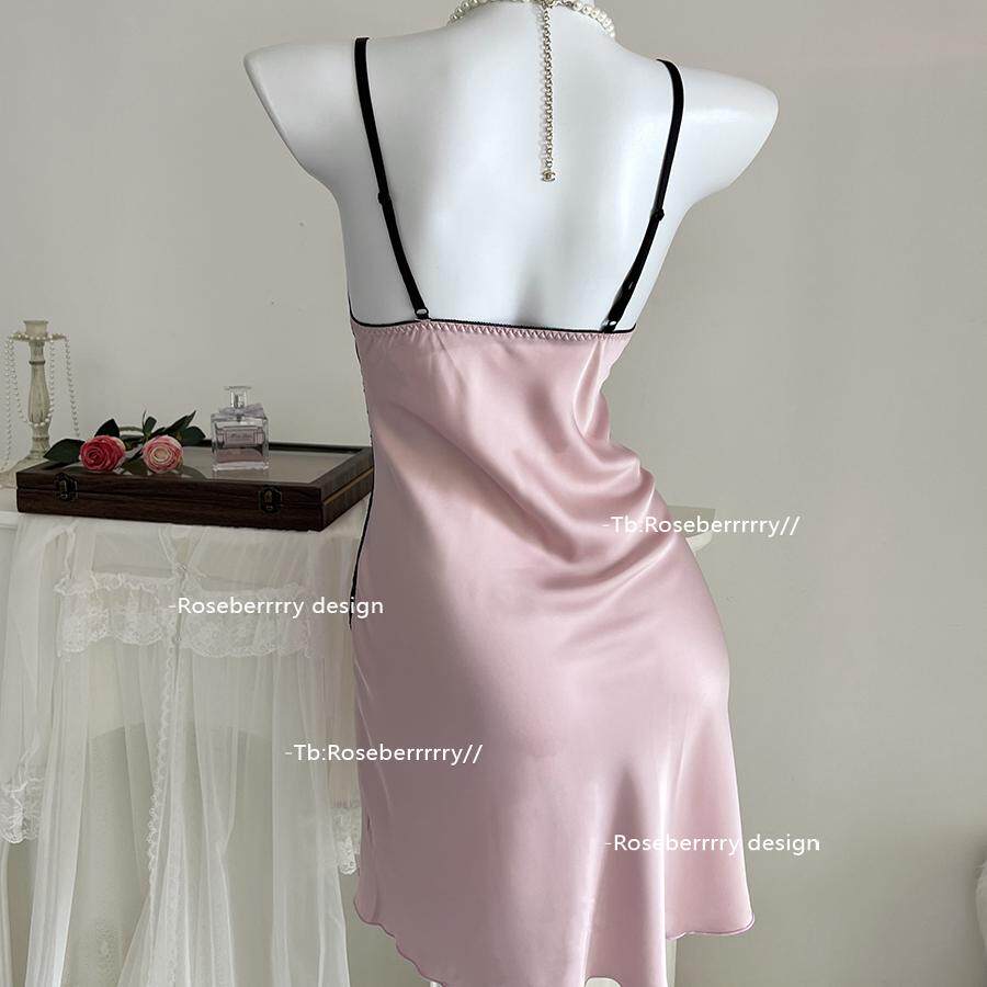 Roseberrrry甜粉微醺 性感气质缎面柔软修身睡裙缎面纯欲风睡衣