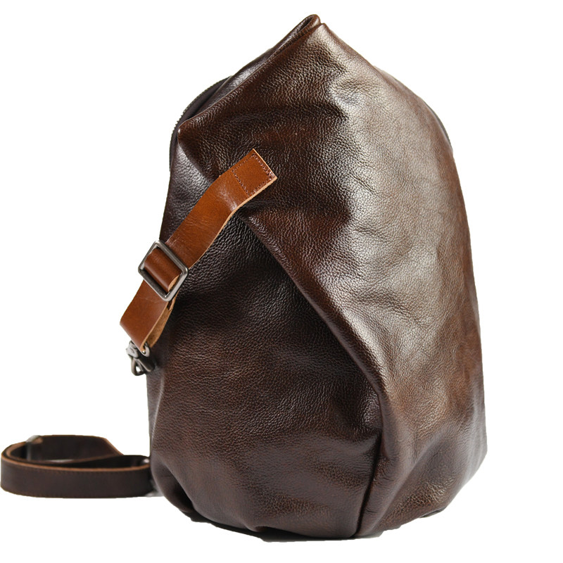 新品休闲男士真皮胸包大容量植鞣牛皮斜跨包头层真皮复古斜肩背包