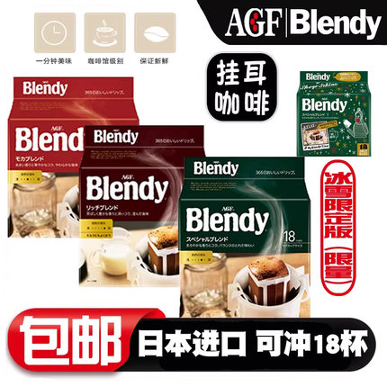 日本进口AGF blendy挂耳咖啡浓郁手冲滤袋美式无蔗糖速溶黑咖啡粉