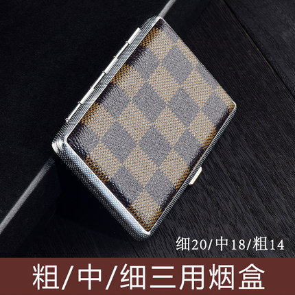细烟烟盒20支装超薄便携男士皮质创意金属防压潮香烟盒中粗支烟夹